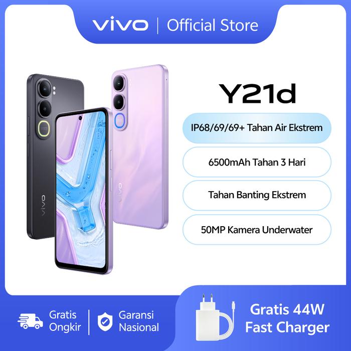 (Best Seller) Vivo Y21d 8/128 GB - RAM 8GB+8GB Extended ROM 256GB - 6500mAh Tahan 3 Hari Tahan Banting Ekstrem, 50MP