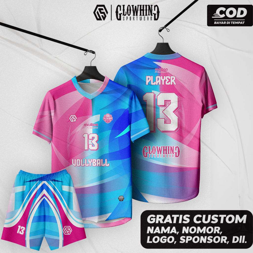 (Gratis Pasang Nama + Nomor) Jersey Voli Cewek / Cowok Full Printing Custom Bisa Satuan