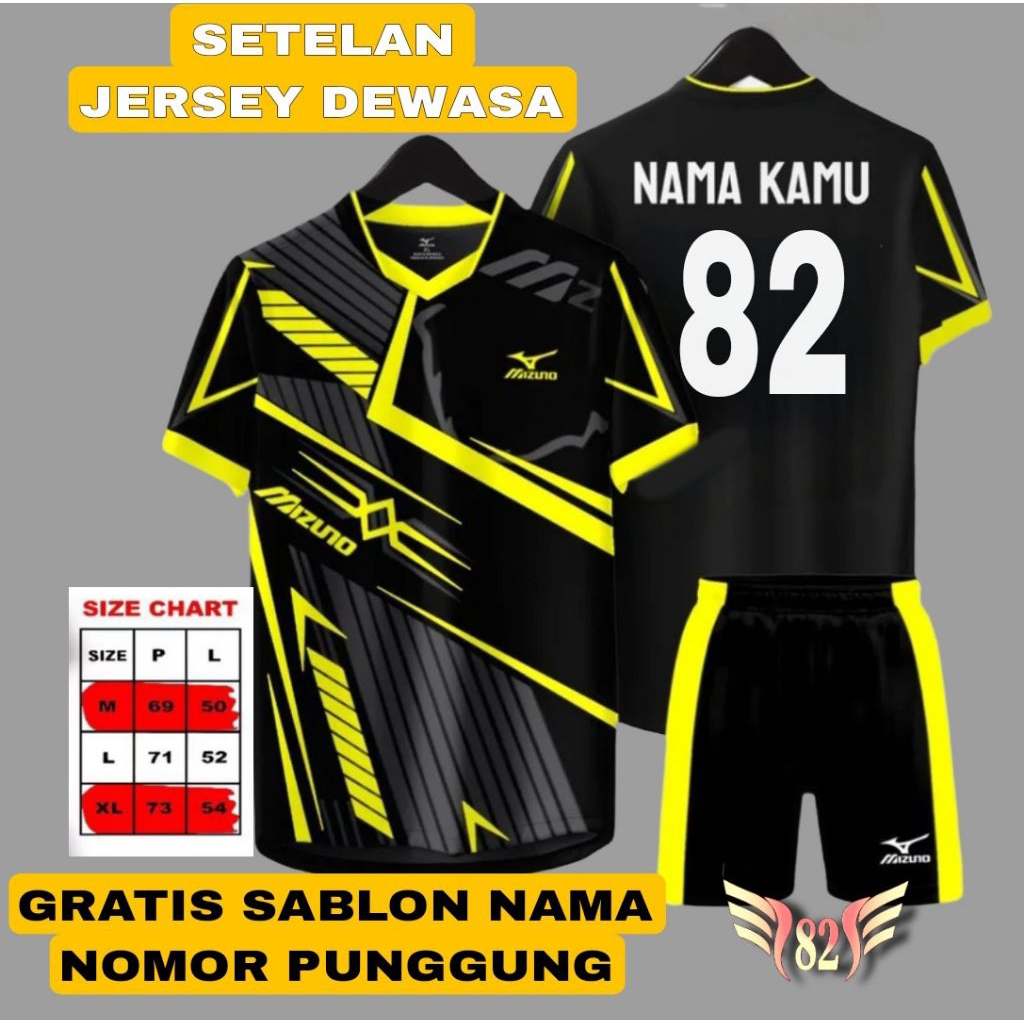 Sablon Nama Nomor Punggung Jersey Setelan Dewasa Pria Wanita Terbaru Costum Baju Olahraga Futsal Volly Bola