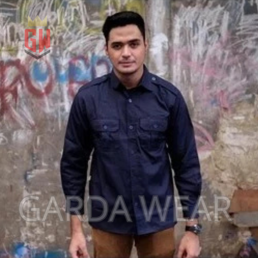 Baju PDL Biru Dongker Navy Lengan Panjang / Kemeja PDH / Baju PNS / Baju Lapangan Outdor