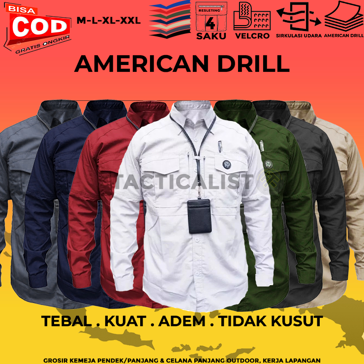 Kemeja Kerja Lapangan Outdoor Hiking Baju Tactical Pria Lengan Panjang PDL Hem PDH AMERICAN DRILL