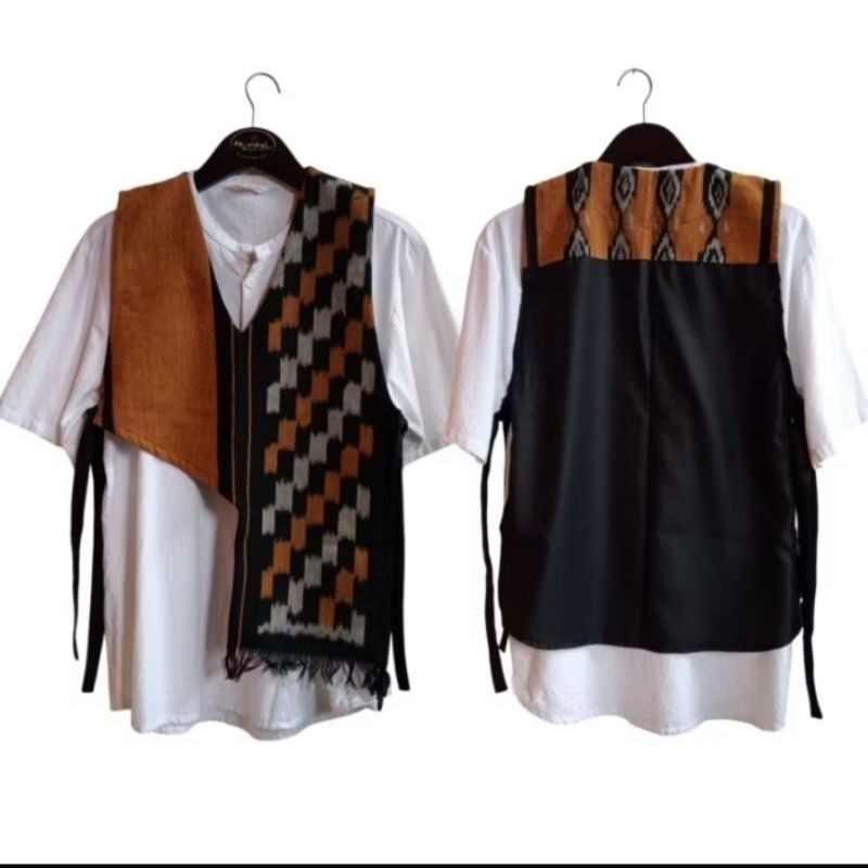 Vest rompi kekinian, bahan tenun ikat asli kombinasi toyobo, untuk pria dan wanita