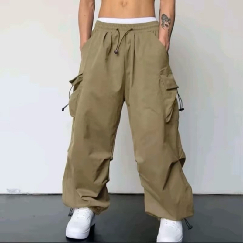Celana Cargo Pria Panjang Model Terbaru Highwaist Korean Style Casual Tali Serut Pinggang Karet