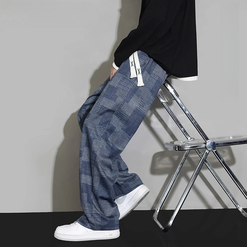 Tamp-X Oversize Celana Panjang Pria Baggy Pants Tartan Llaki Laki Loose Pants Santai Korean Style Straight Kulot