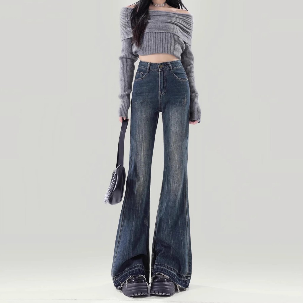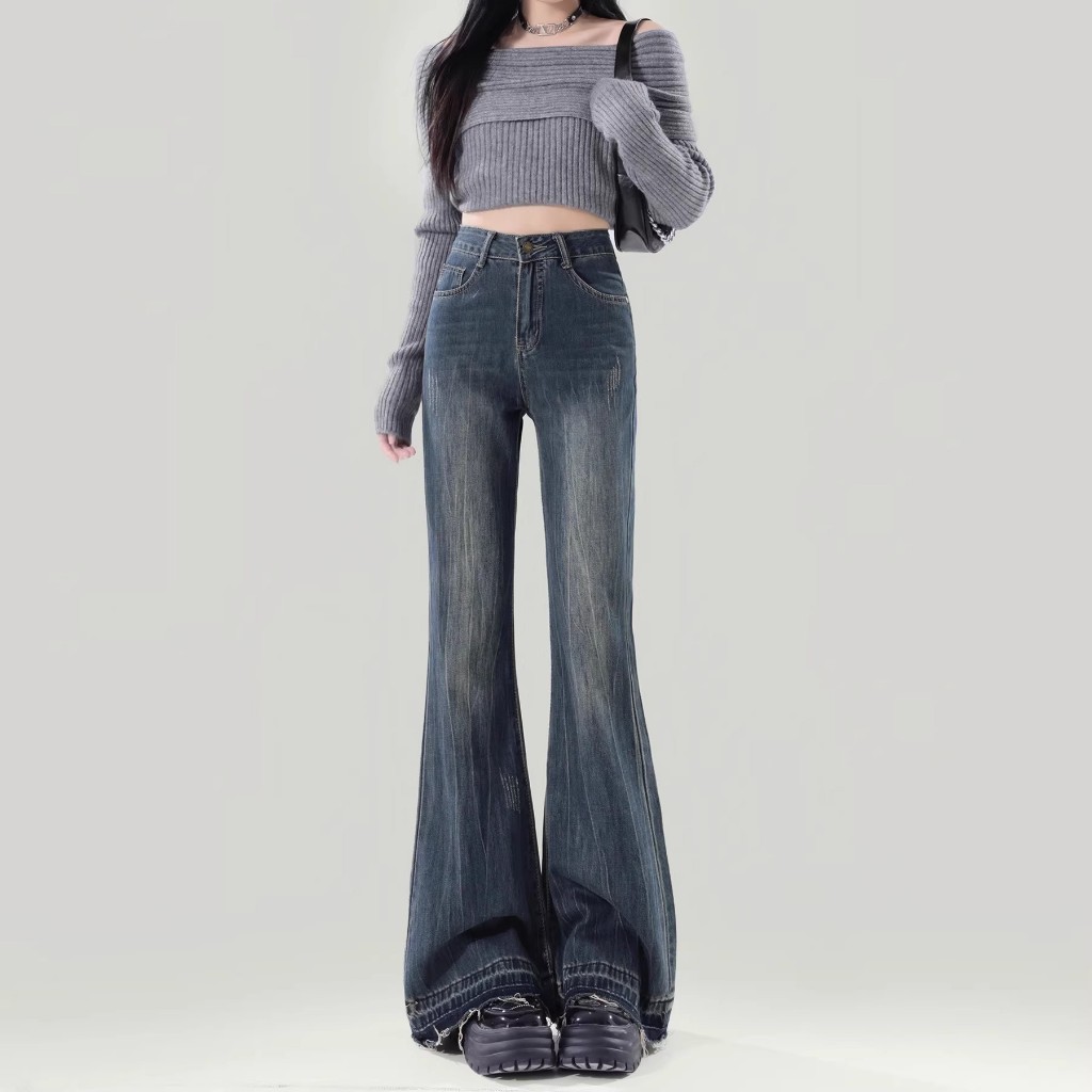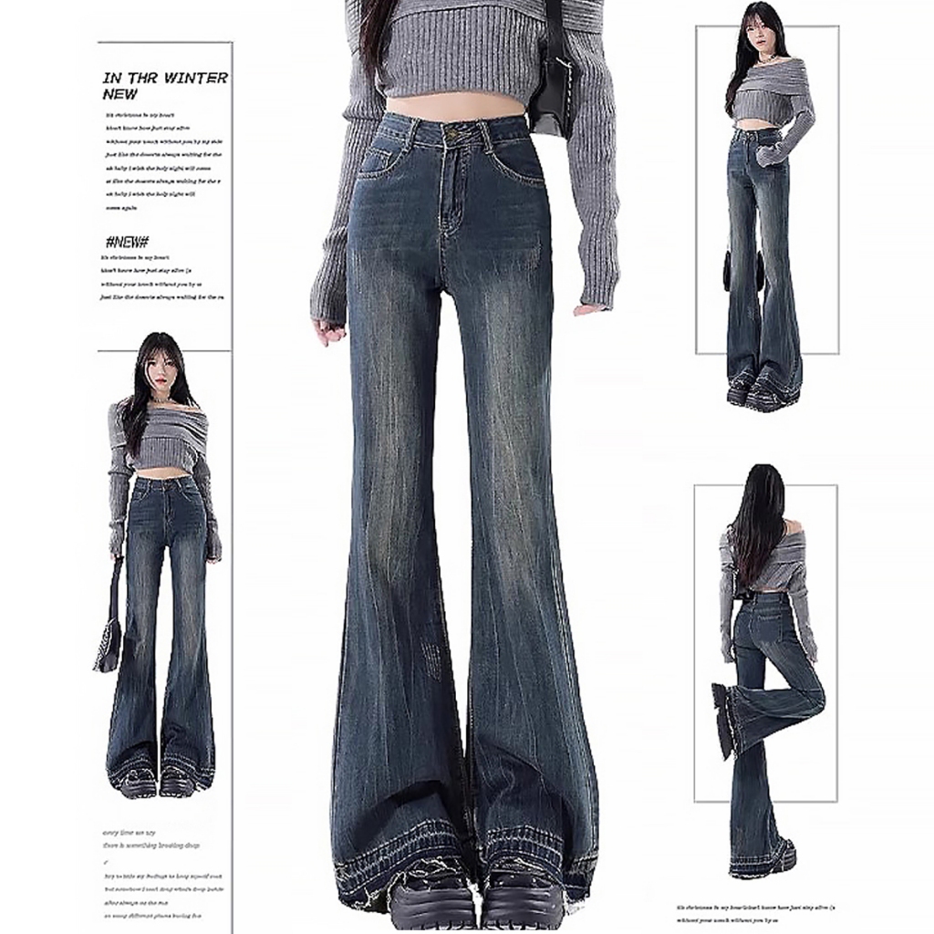 【Keygirl】Celana highwaist Cutbray Jeans Panjang Wanita Korean Style Flared Denim terbaru