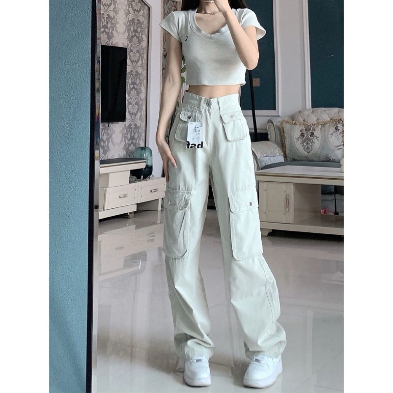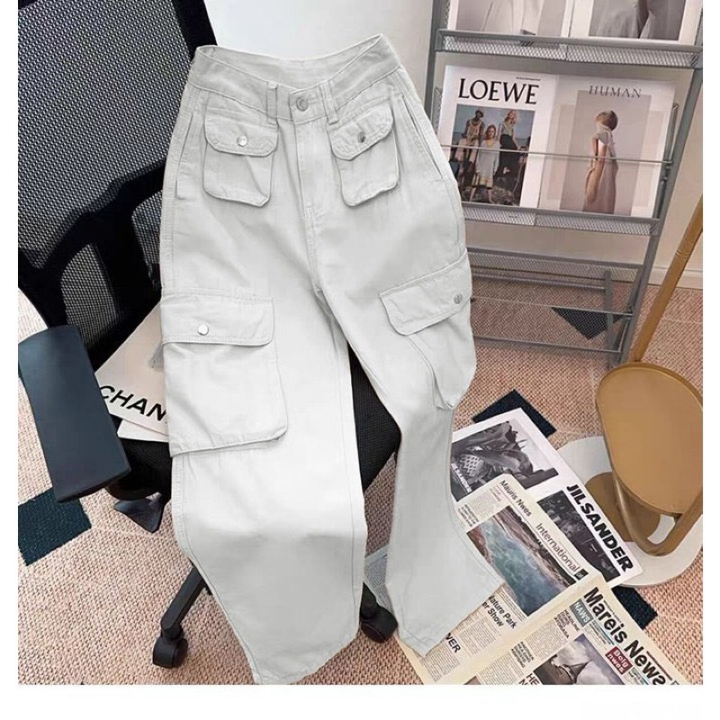 CELANA CARGO KOREAN STYLE KREM PASIR PUTIH / CELANA CARGO LOOSE