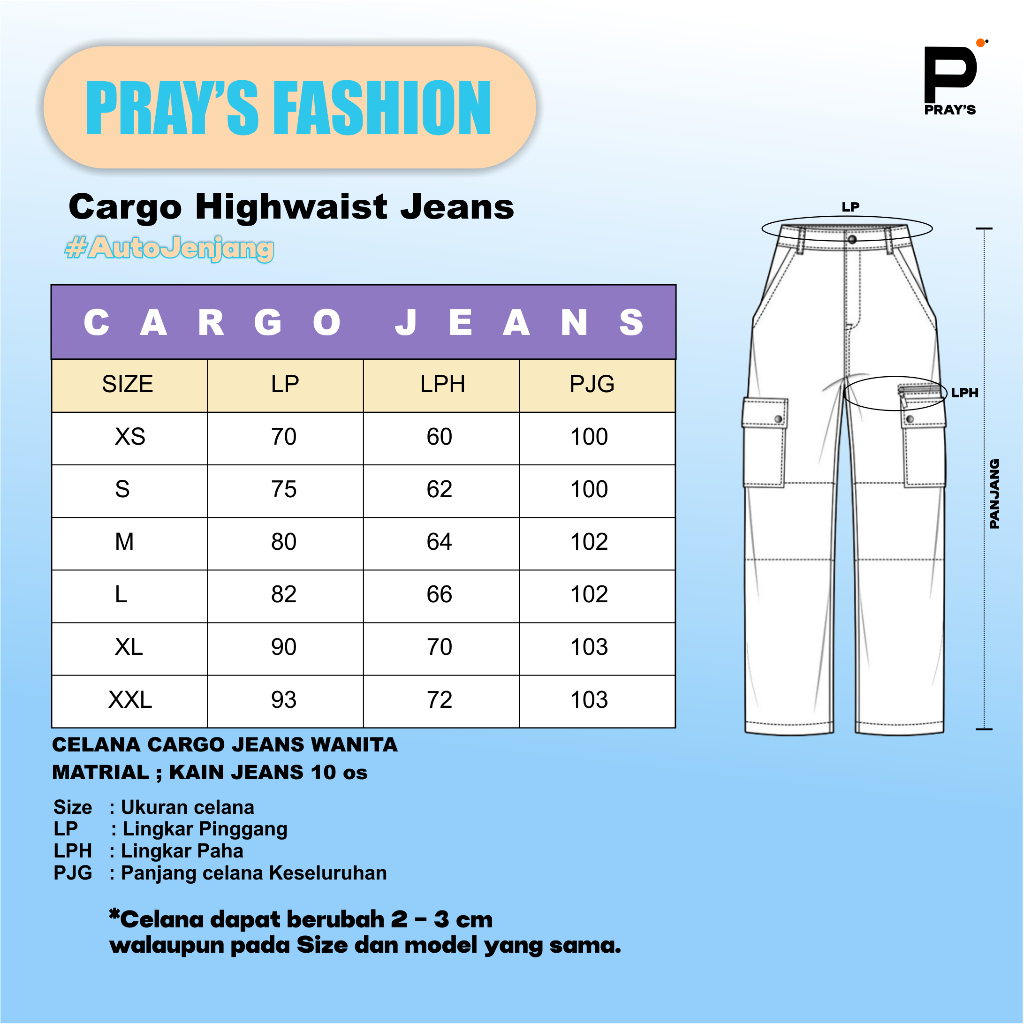Prays Fashion - Cargo Denim Pasir Putih Highwaist Loose Celana Jeans Wanita Korea(realpict)
