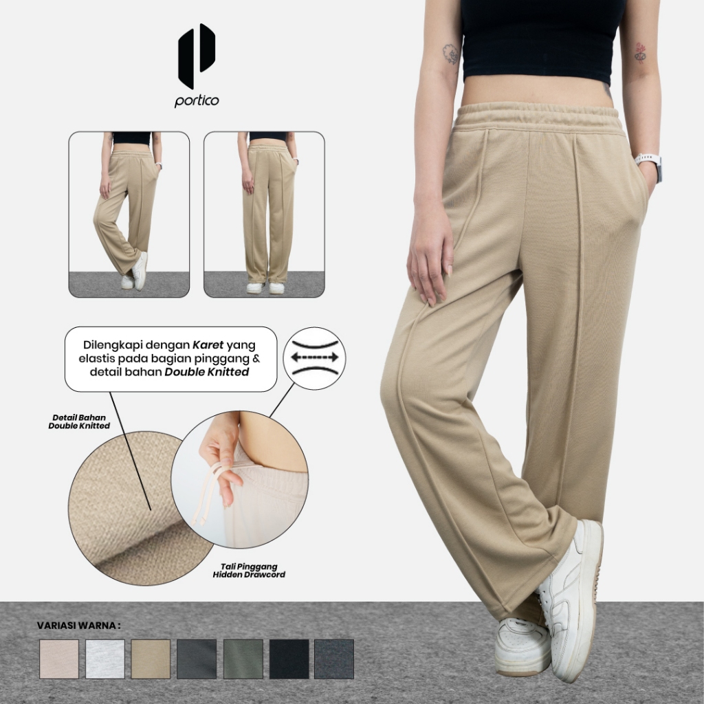 PORTICO - Lexa High Waist Baggy Loose Pants Korean Style - Double Knitted - Celana Panjang Wanita