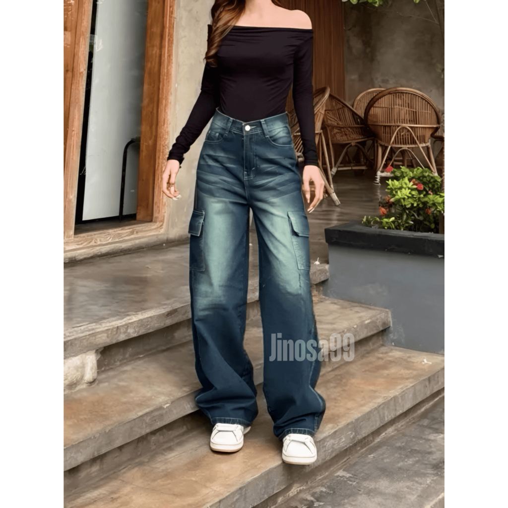 Celana Jeans Cargo Baggy Highwaist – Oversize Korean Style Denim Unisex Terbaru