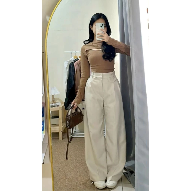 Oro Pants Celana Kekinian Wanita Kerja Kantor Korean Style Celana Loose Pants Anti Kusut Highwaits Trousers