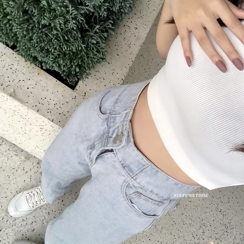 Celana Jeans Wanita Korean Style - High Loose Jeans - Celana Jeans Panjang Wanita