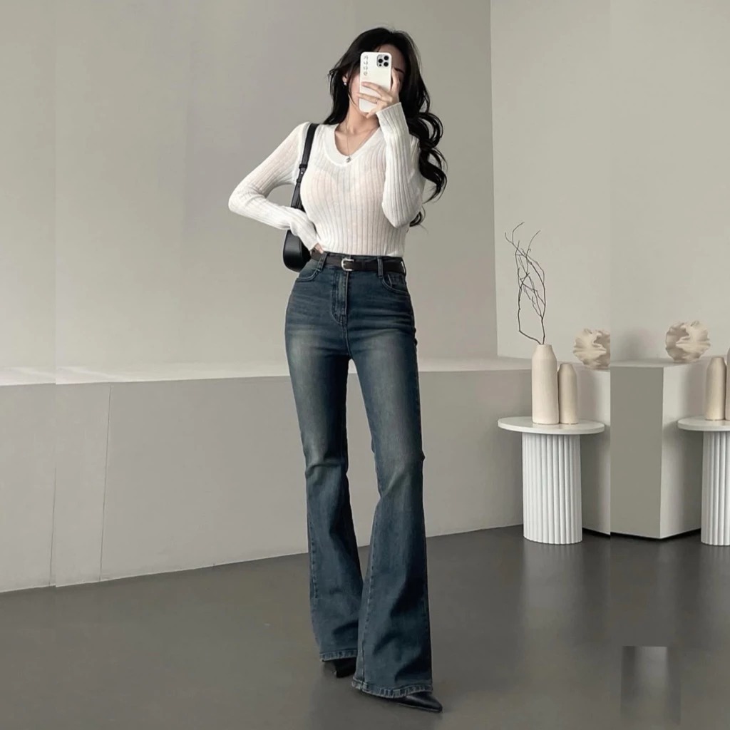 Highwaist Cutbray Jeans Retro 114 - Celana Jeans Cutbray Premium - Whisker Premium Stretch - Wanita Korea Style