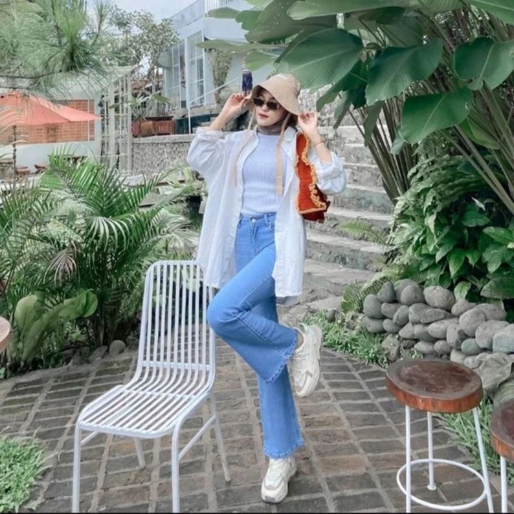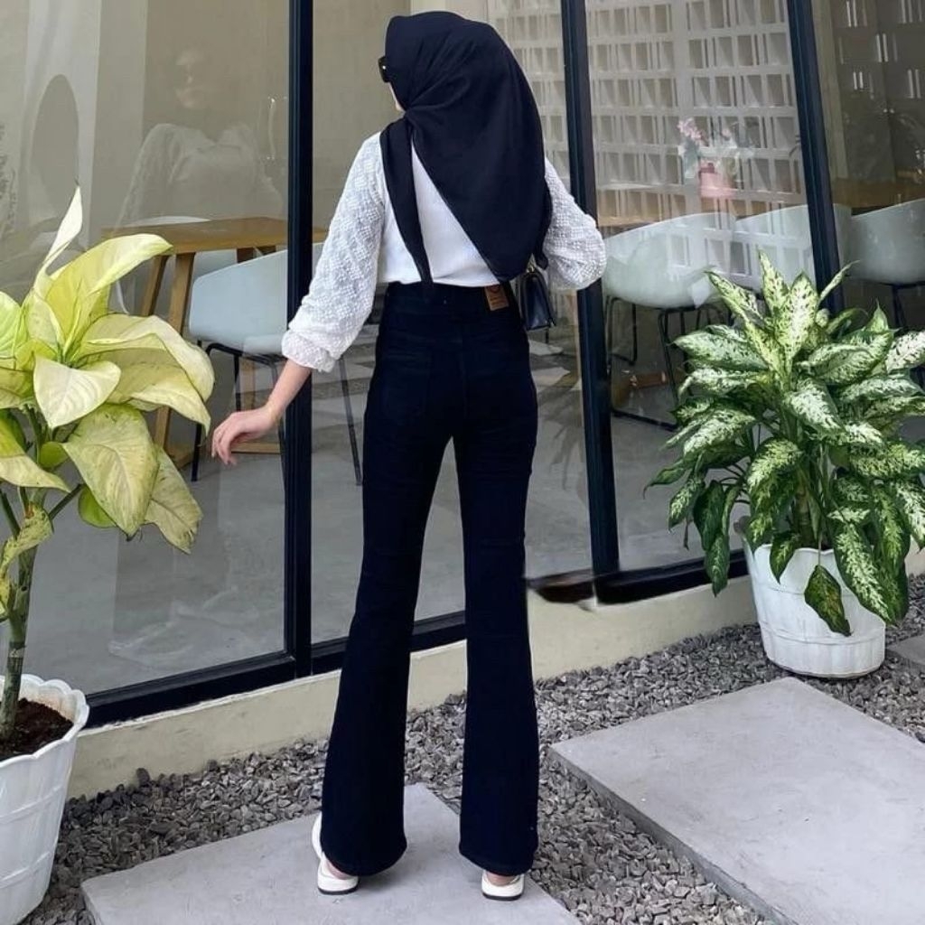 Celana Jeans Cutbray Highwaist Wanita Loose kekinian - Celana Highwaist Jeans Cutbray Flared Streetch Premium Quality