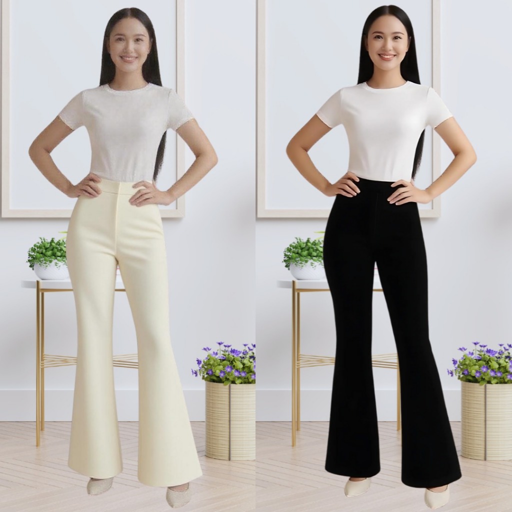 Terbaru Celana Fit And Flare Pants Cutbray Scuba Pinggang Highwaist Bahan Streach Melar Elastis