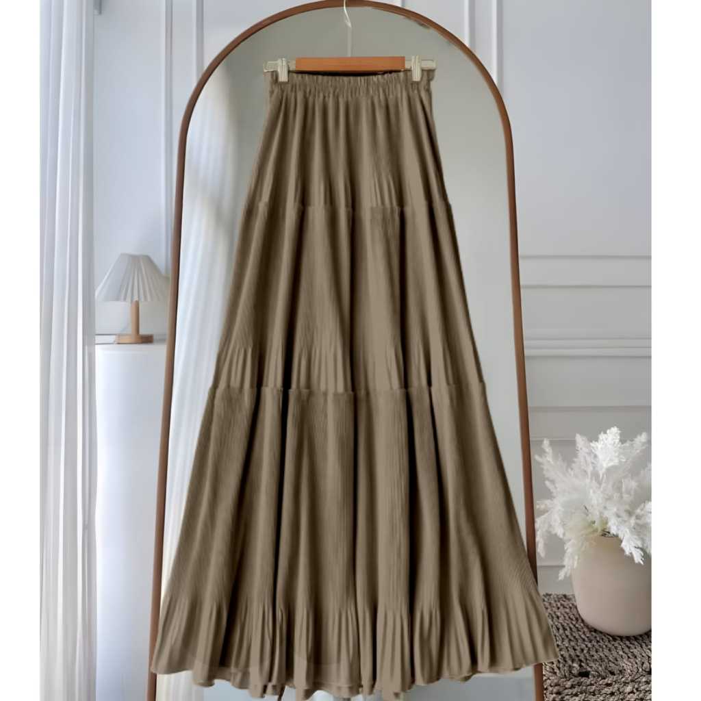 PLEATED SKIRT - Rok Plisket Cabang Wanita - Layer SKirt Hyget Premium Pleats Karet Fit to XL