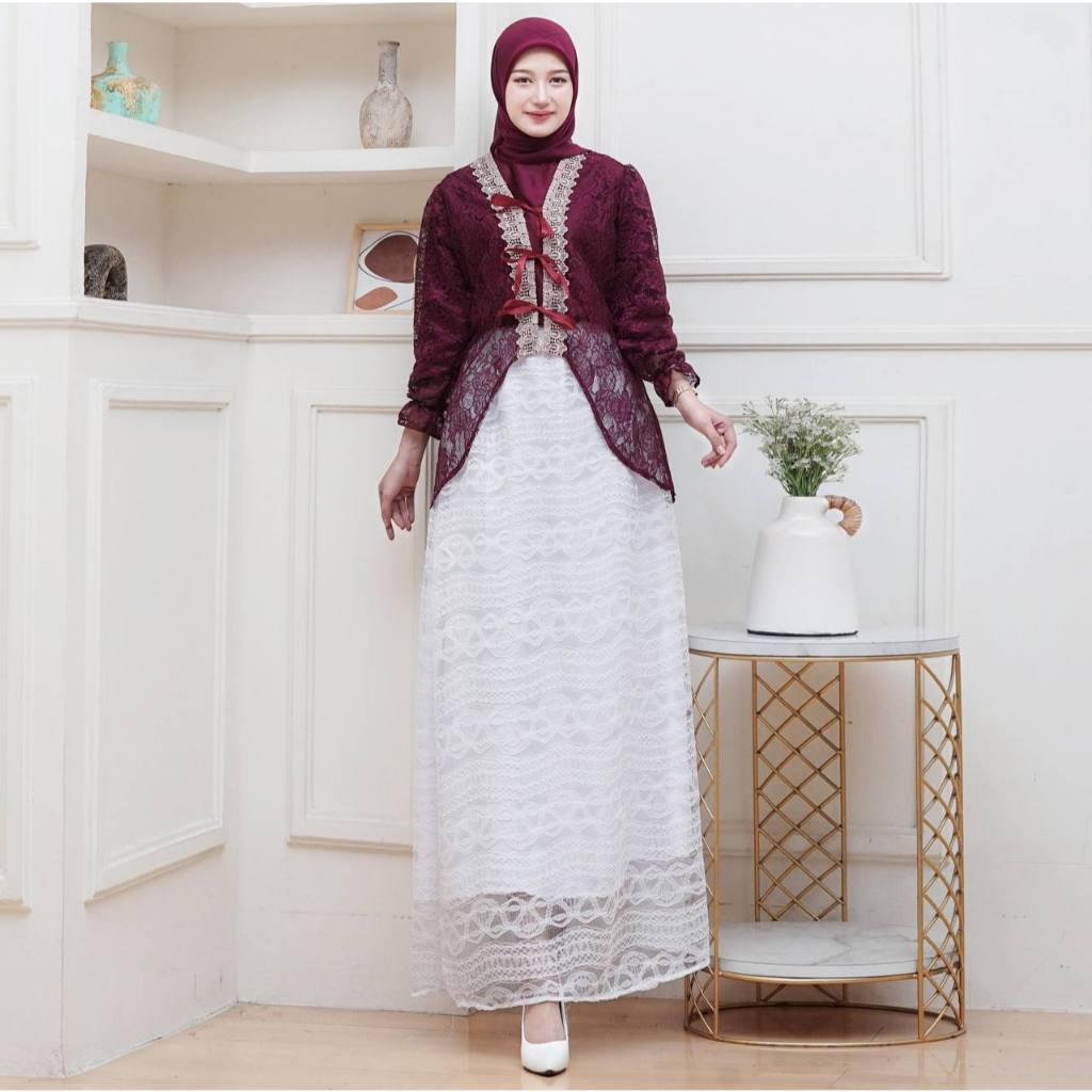 One Set Exclusive Modern Wiza Series Gamis Kondangan Kekinian Gamis Brukat Pesta Nikahan Seragam Gamis Lebaran Wanita Te