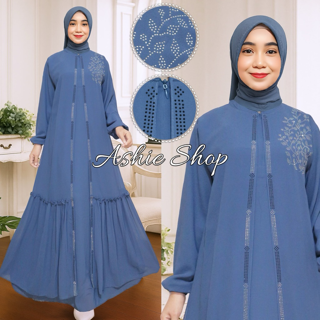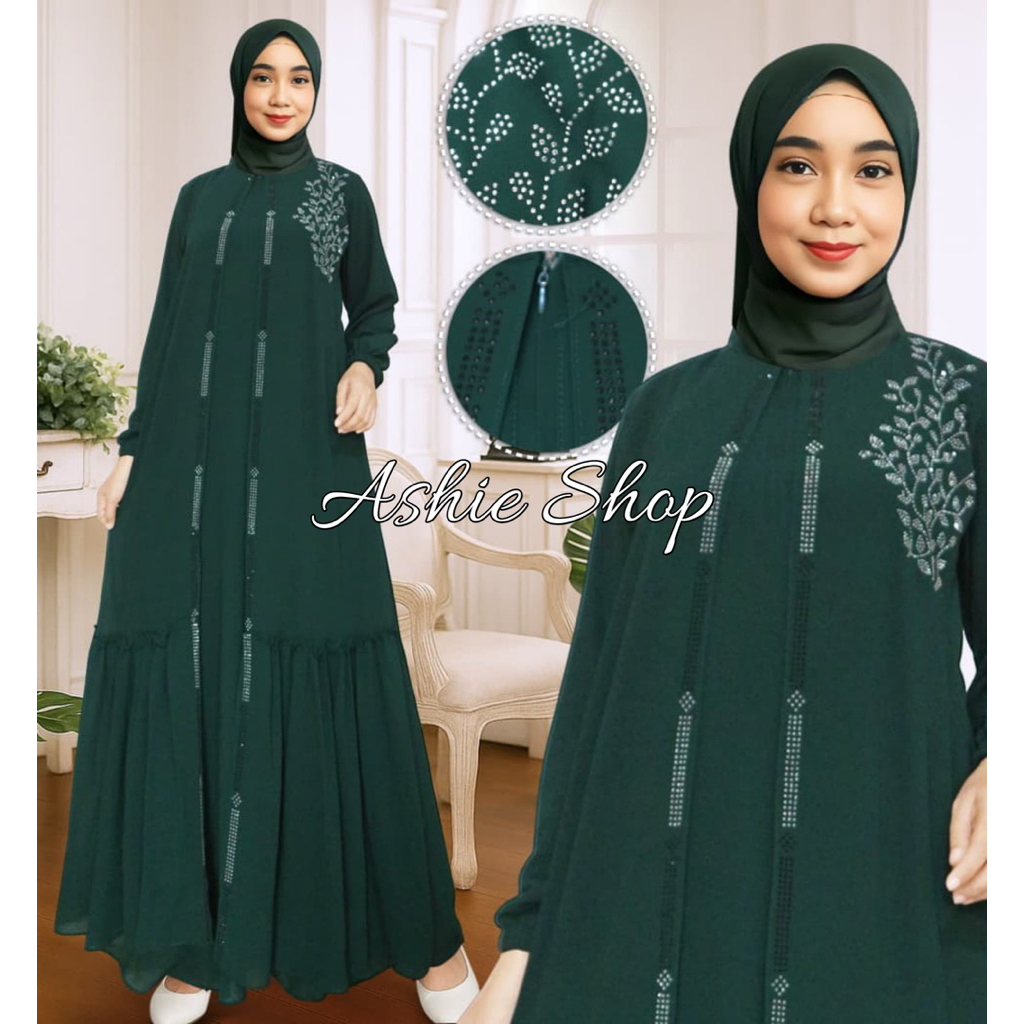 Gamis Abaya Ashie 2 Layer Ceruty Full Payet Wanita Muslim syar’i Modern