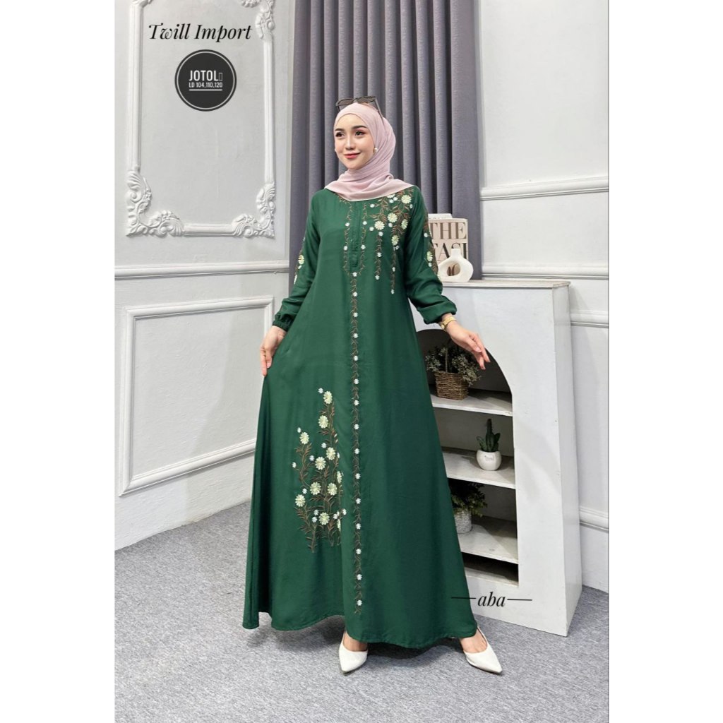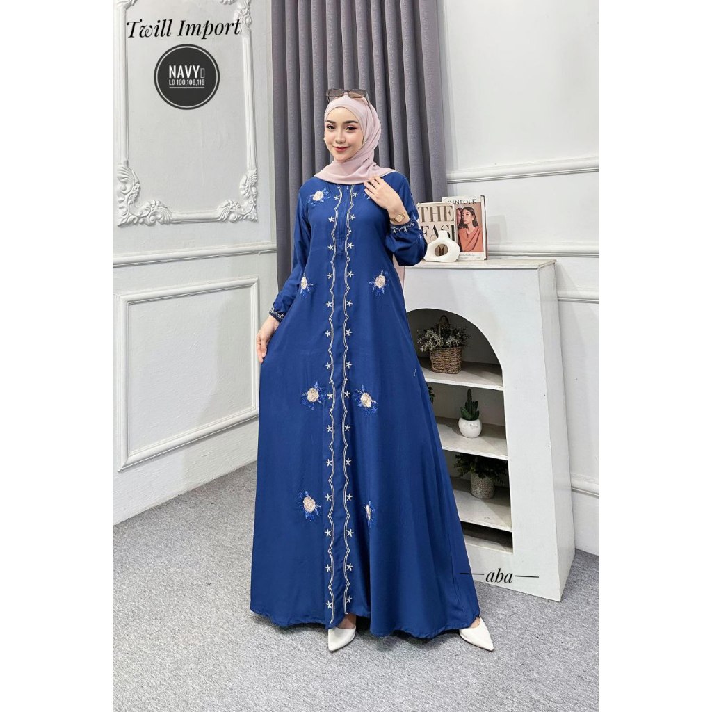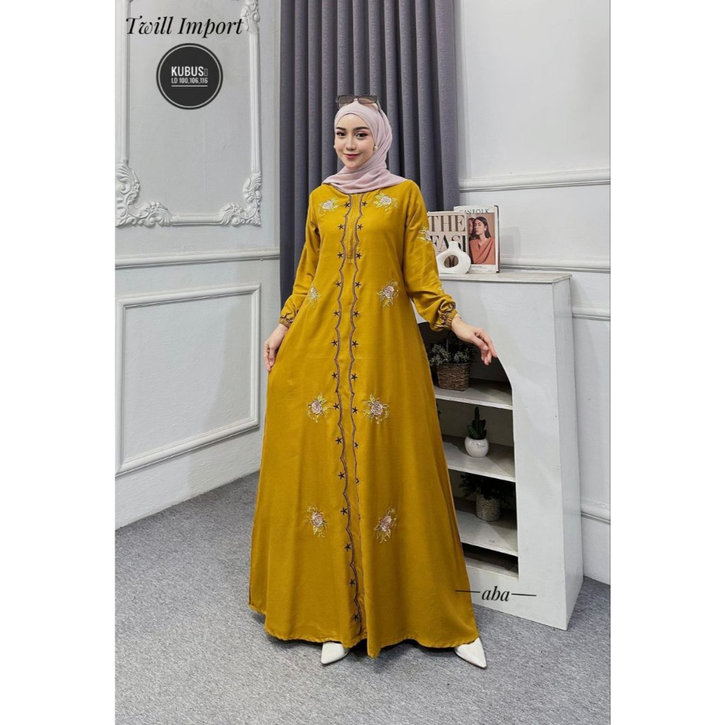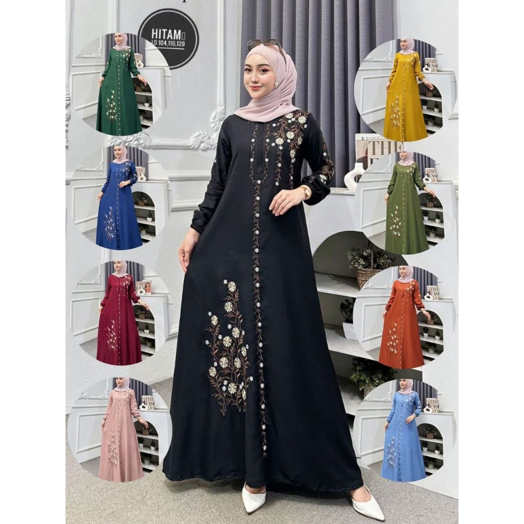 Nikmat - Gamis Twill Bordir Busui Friendly Adem Modern banyak warna pilihan