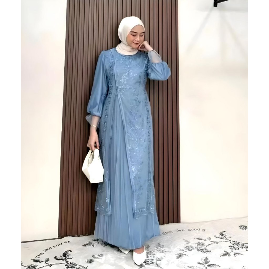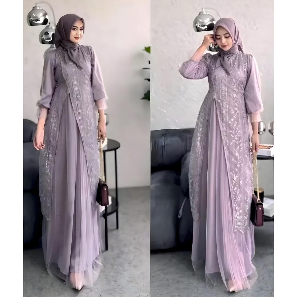 Maxi Kinar Dress Gamis Pesta Kondangan Seragam Bridesmaid Wanita Bahan Brukat Silk Tille Garden