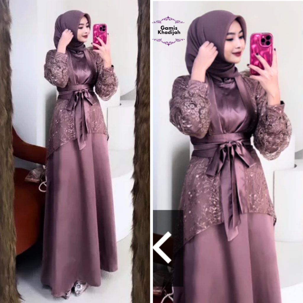 VELOXA DRESS SATIN BURGUNDY BUSUI FRIENDLY INNER OUTER BROKAT KONDANGAN GAMIS LEBARAN KEKINIAN 2025