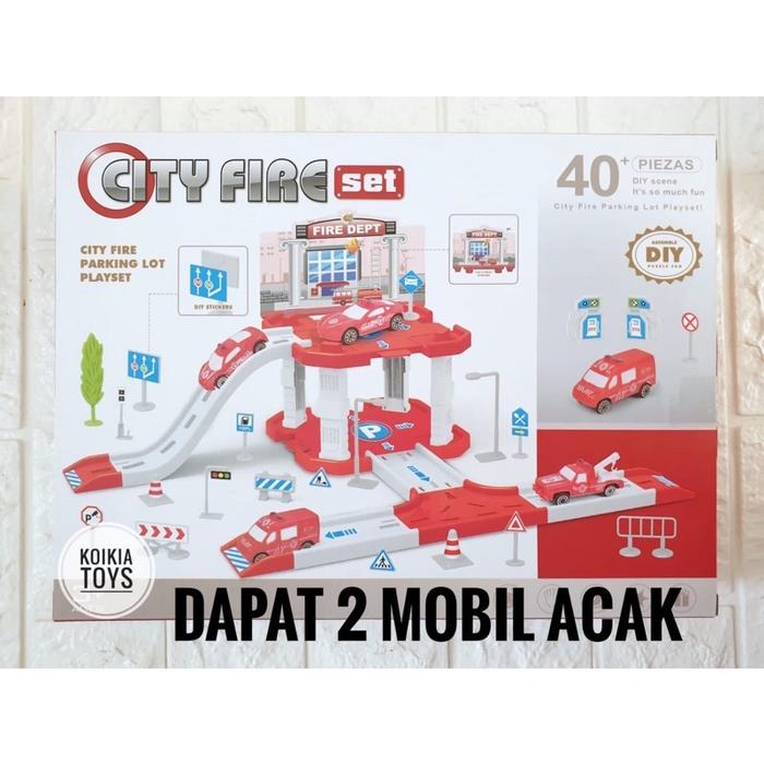 [Star]Mainan truk DIY dengan jalur parkir Truck parking lot playset parkiran mobil - Truk Kuning
