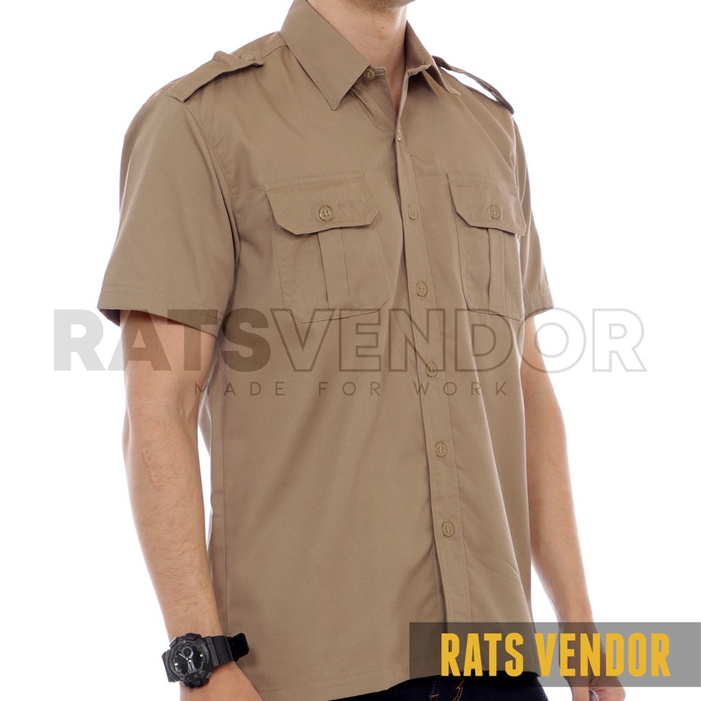 Kemeja Lapangan / PDL / Gunung / Outdoor Rats Vendor Lengan Pendek Warna Khaki