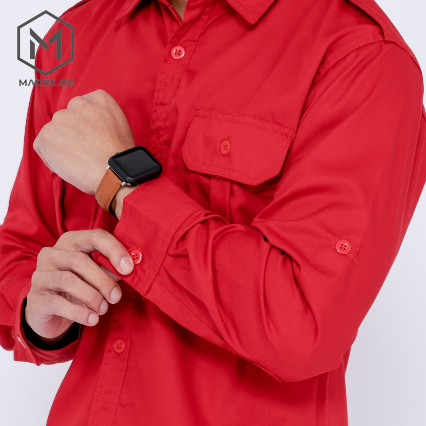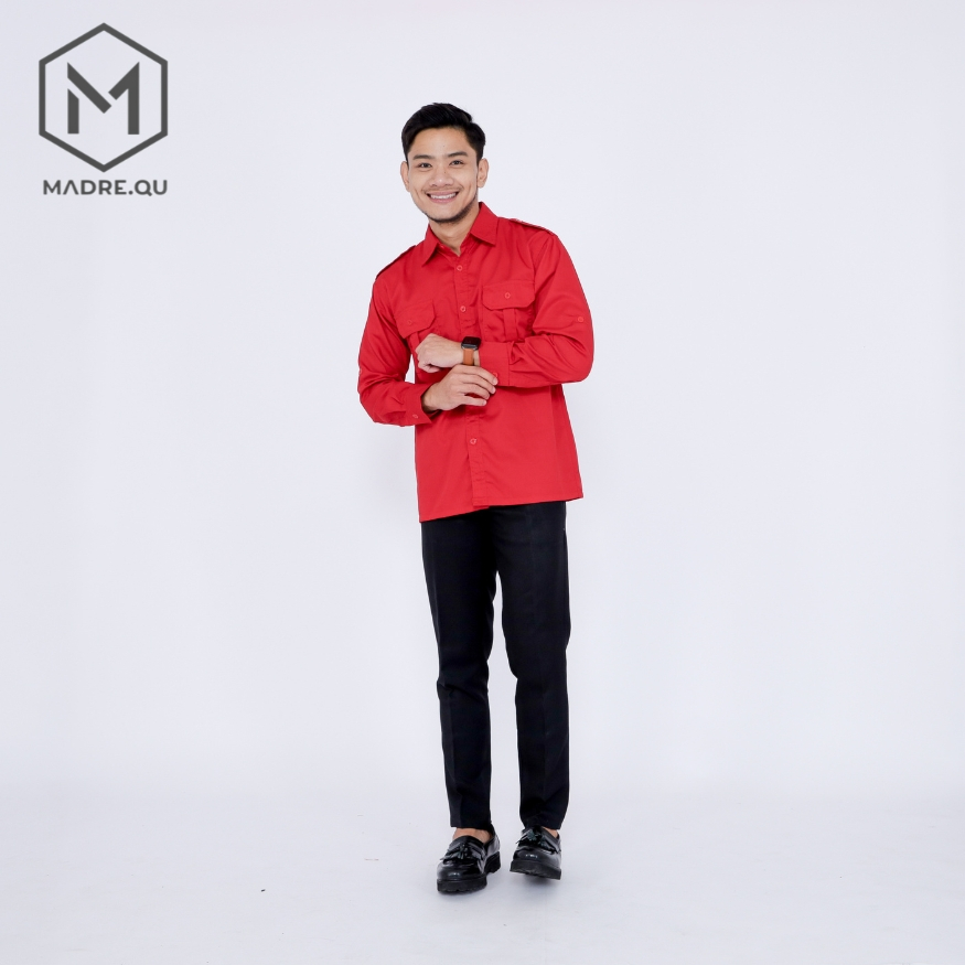 Kemeja Pria Merah Pdh Pdl Lapangan Outdoor Bahan American Drill
