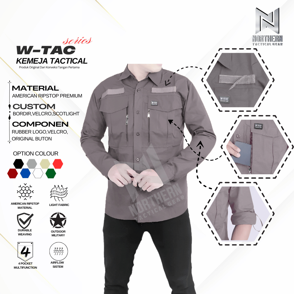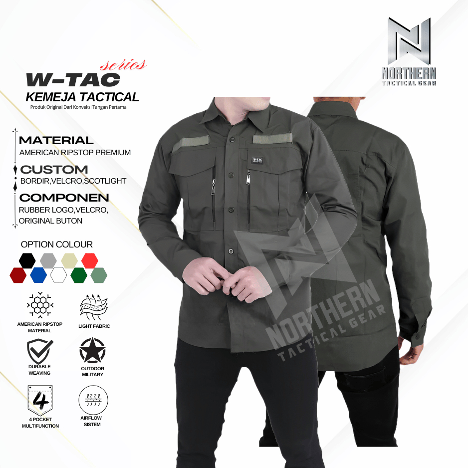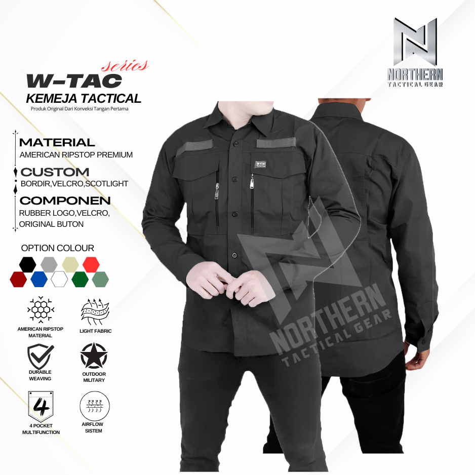 Kemeja Tactical Outdoor Lengan Panjang Pria Baju PDL W-Tac Ripstop TR Premium High Quality Custom Bordir Seragam Kerja K