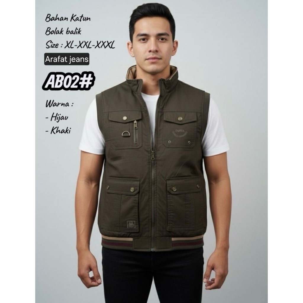Rompi Duhta Katun Import Bolak Balik/Rompi Pria Cargo Halus Dan Tebal