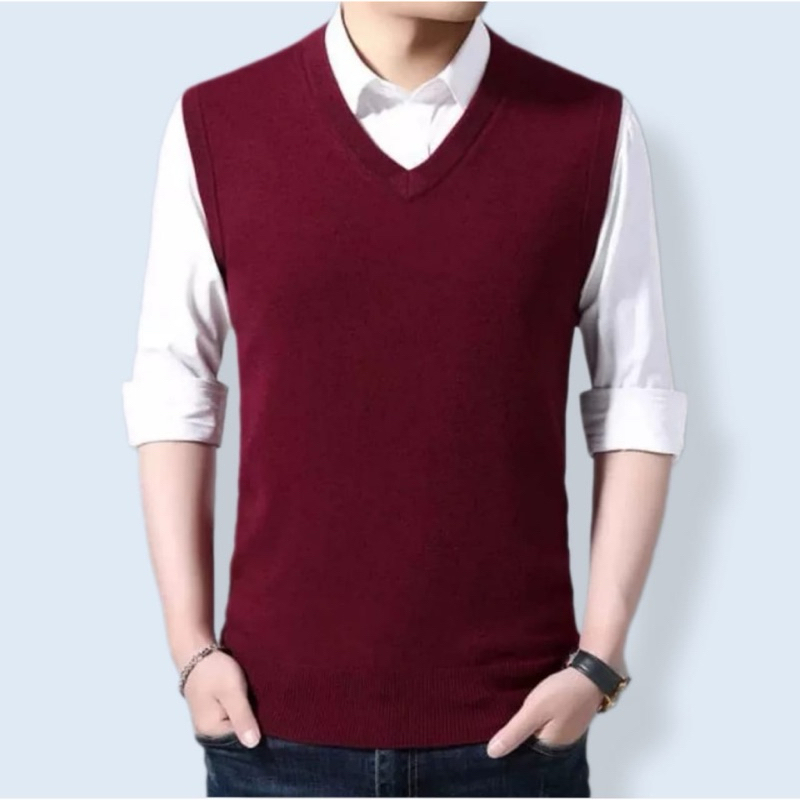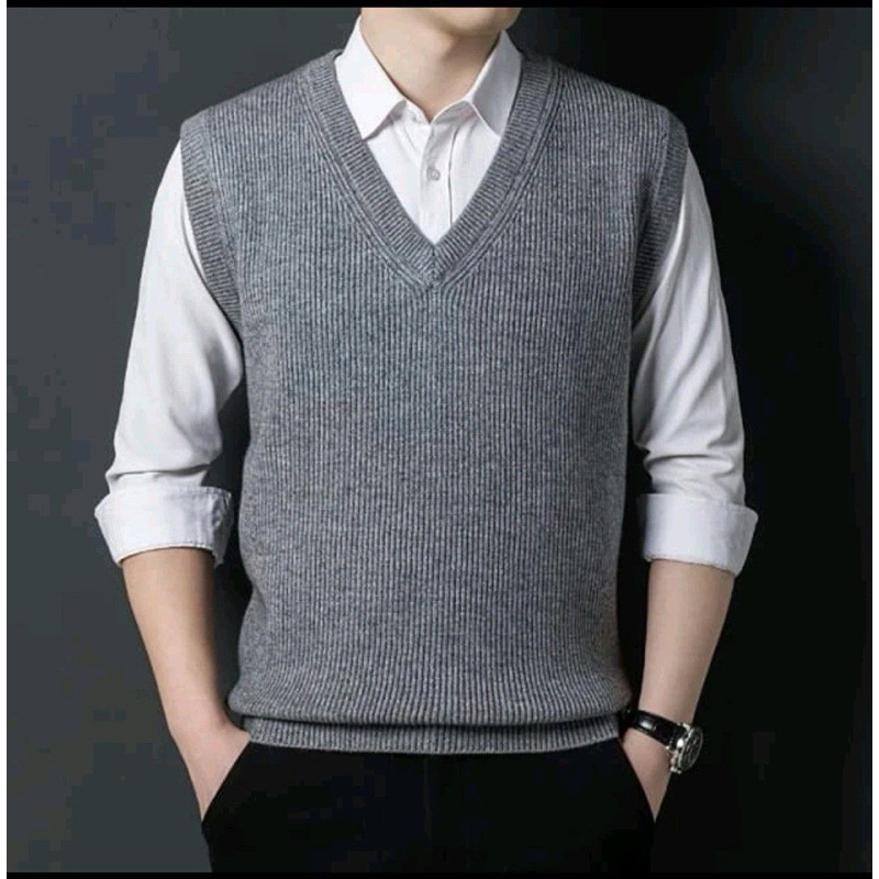 ROMPI RAJUT PRIA PREMIUM KNIT VEST VNECK LIST / VEST KNITTING POLOS LIST KOREA STYLE BEST