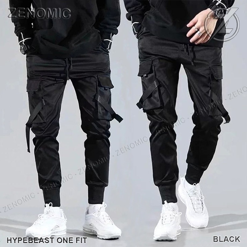 Celana Jogger Pants Hypebeast Pria Zenomic Black Techwear Cyberpunk Cargo Pocket Original Keren Hip Hop Dance Avolet Ver