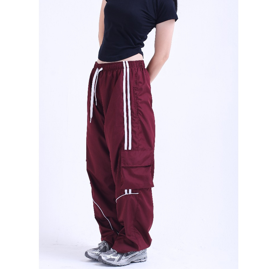 NOMOLU - Celana Baggy Panjang Wanita Strip Highwaist Celana Panjang Korean Style Pants dance pants