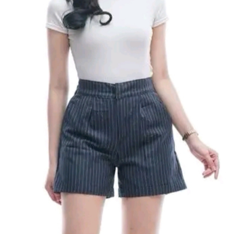 Celana Stripe Pants Basic - Celana Pendek Salur Wanita M L XL XXL - Korean Style Pants