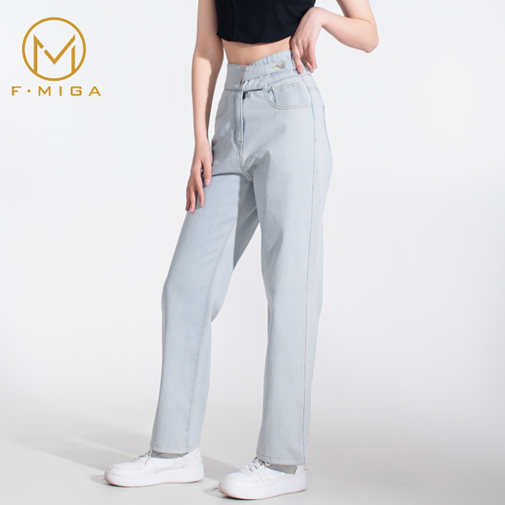 F·MIGA C33 Korean Style Wanita High kasual Kulot Bagy Jeans Panjang Celana Jeans Wanita - Biru Muda