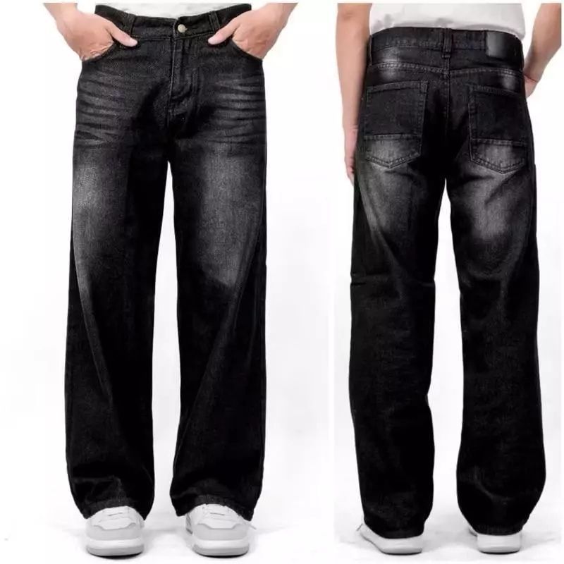 Celana panjang jeans pria baggy pants skena Gombrong wisker korean style oversize loose blue jeans straight boyfriend je