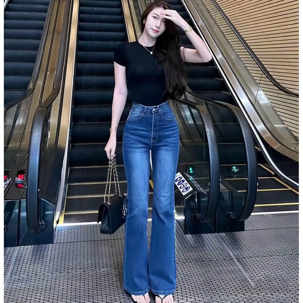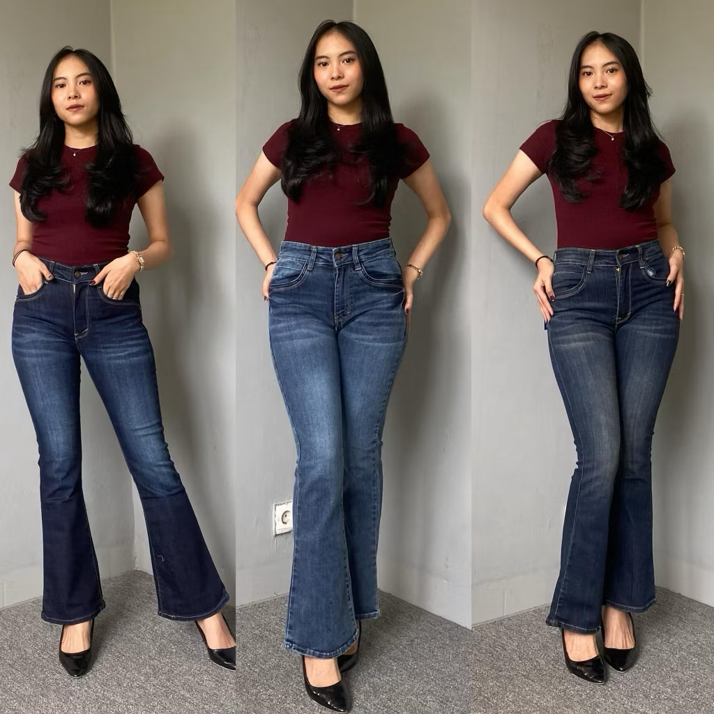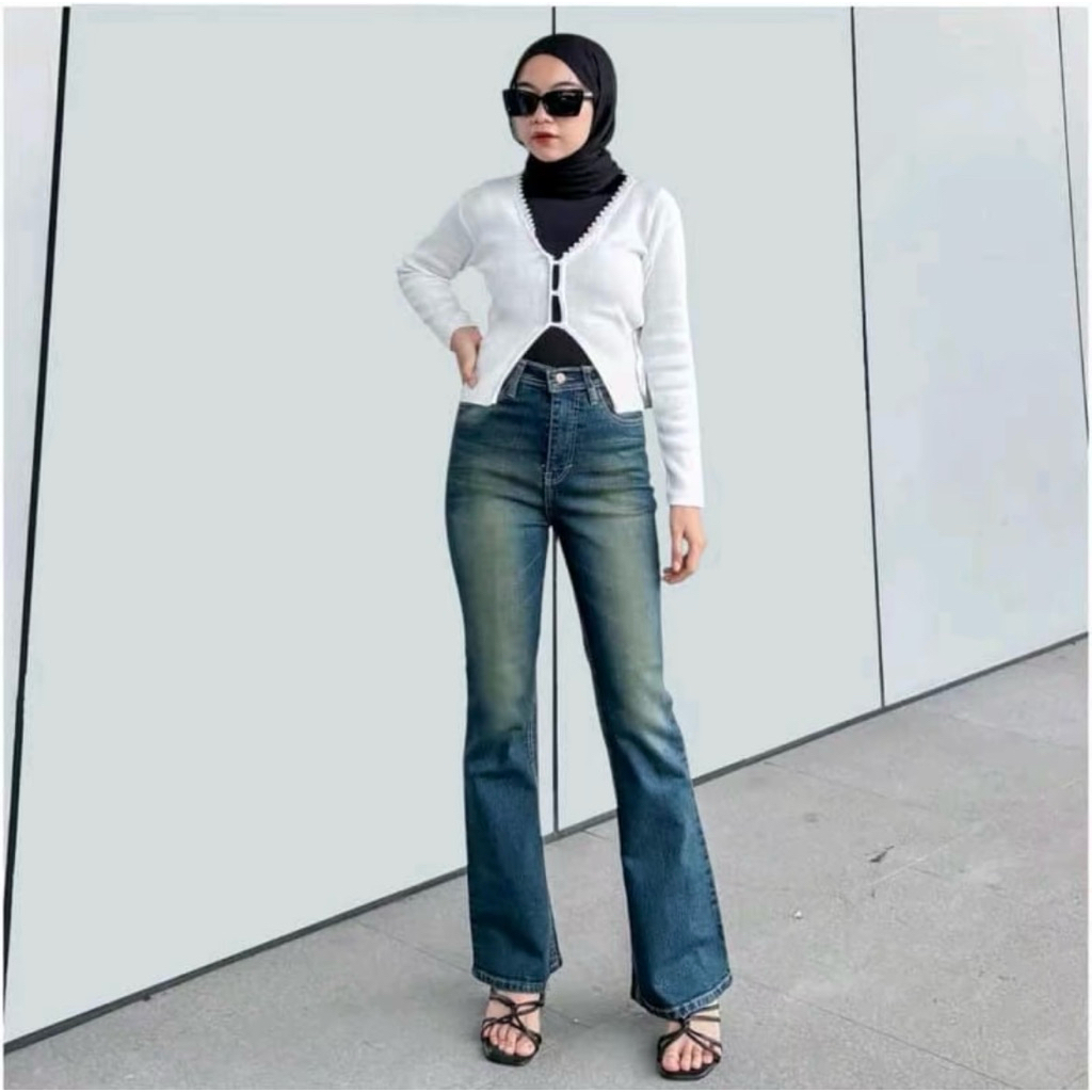 Manohara- Cutbray Jeans Strecht Wanita Black Wash kekinian