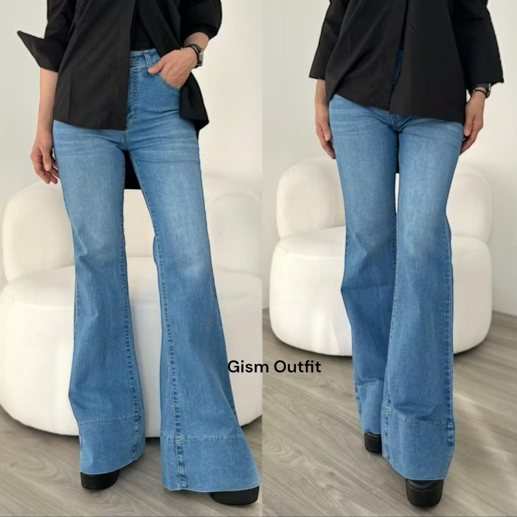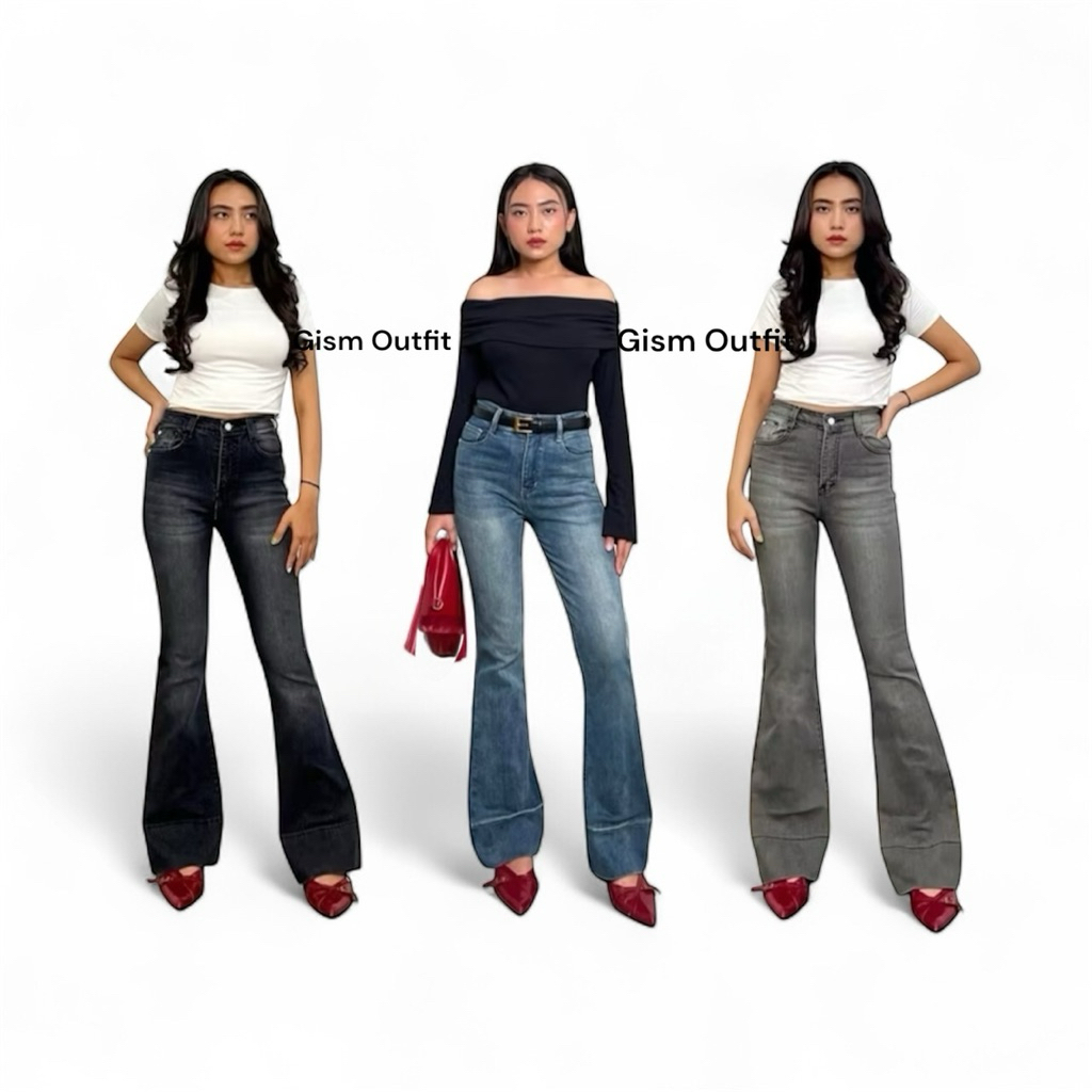 Jennie-Celana Jeans Wanita Cutbray Lipat Bawah Denim Strechi Melar Ngaret Vintage