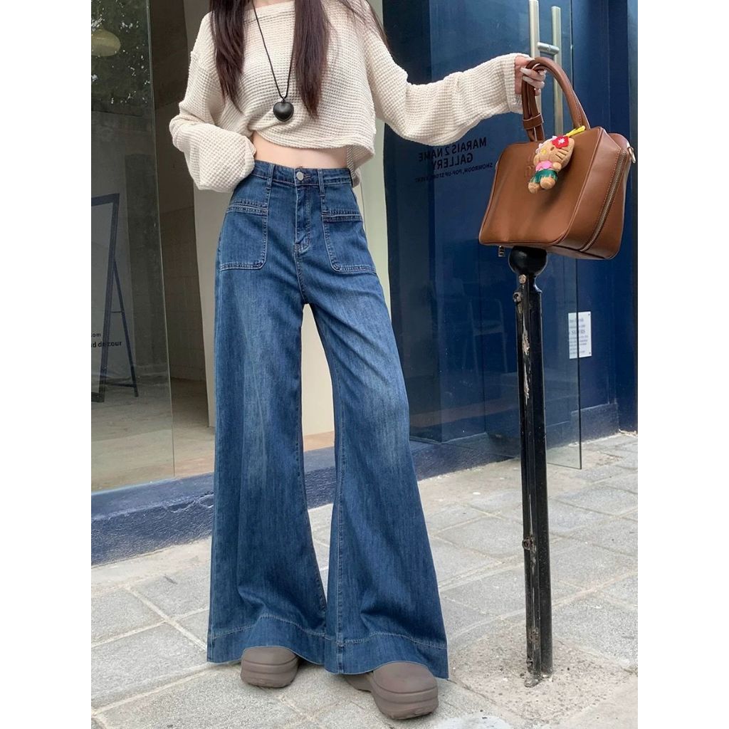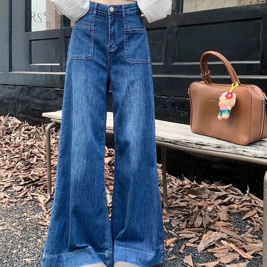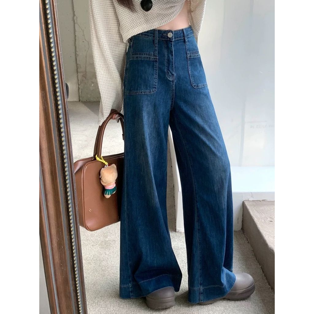 Biru tua Cutbray ada melar Highwaist Kekinian Korean Style Celana Jeans Panjang Wanita