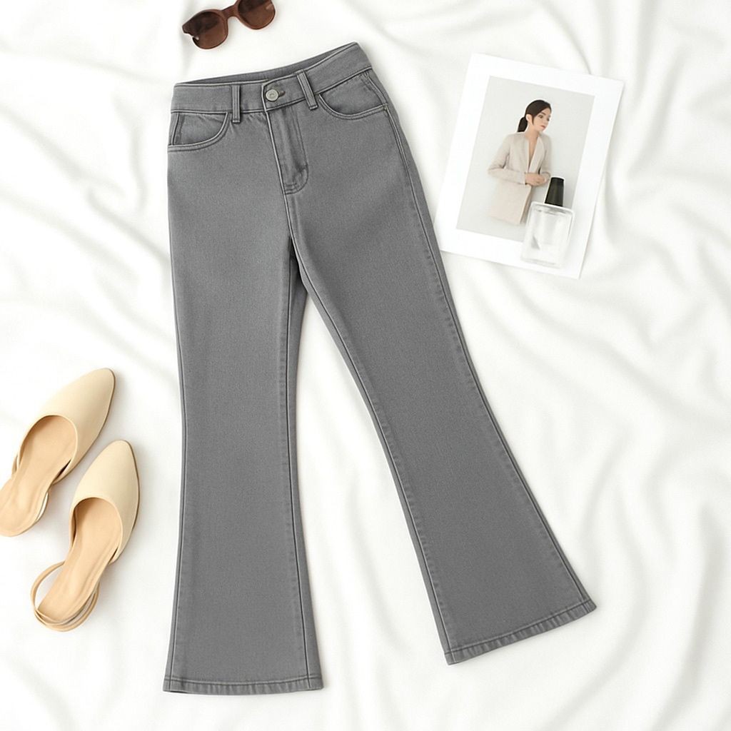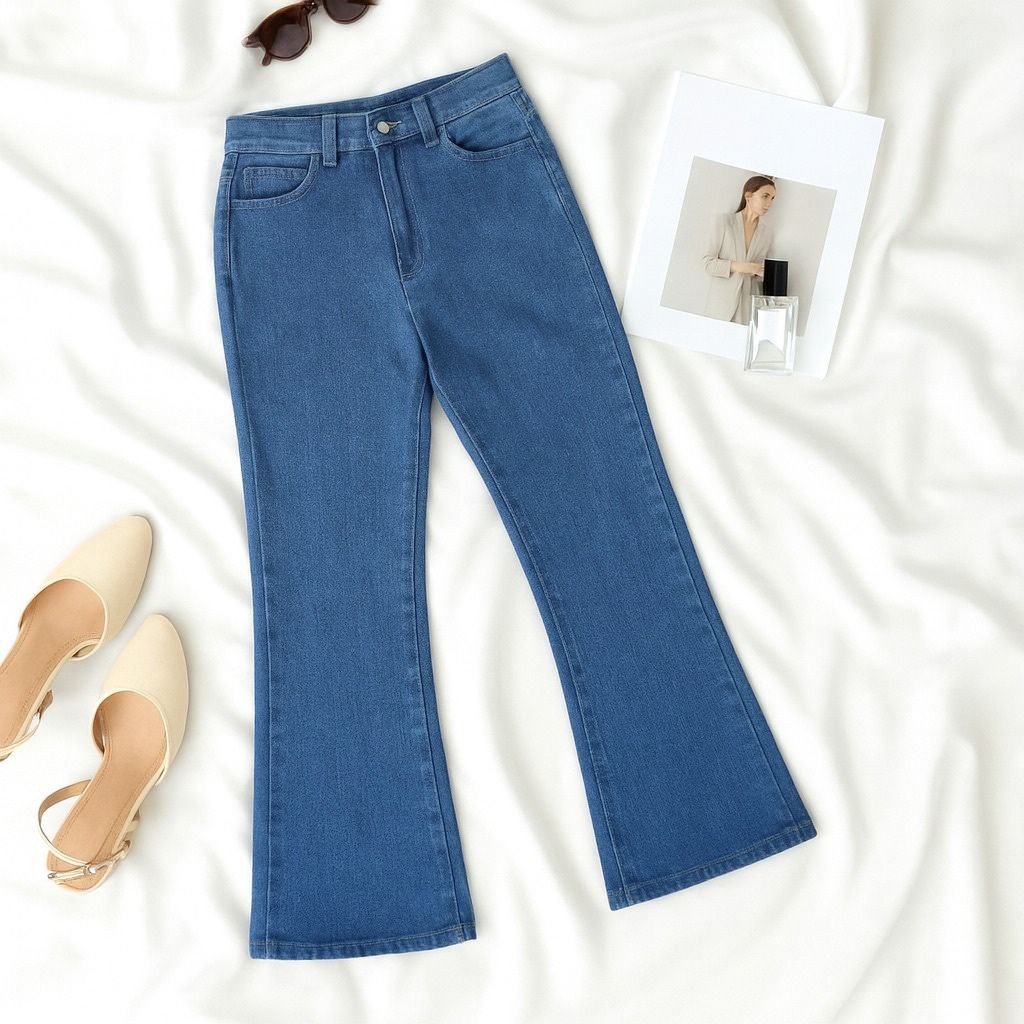 Celana Jeans Cutbray High Waist Wanita Remaja Panjang Polos Biru Hitam Abu Stretch Tebal Korean Style BELVA3