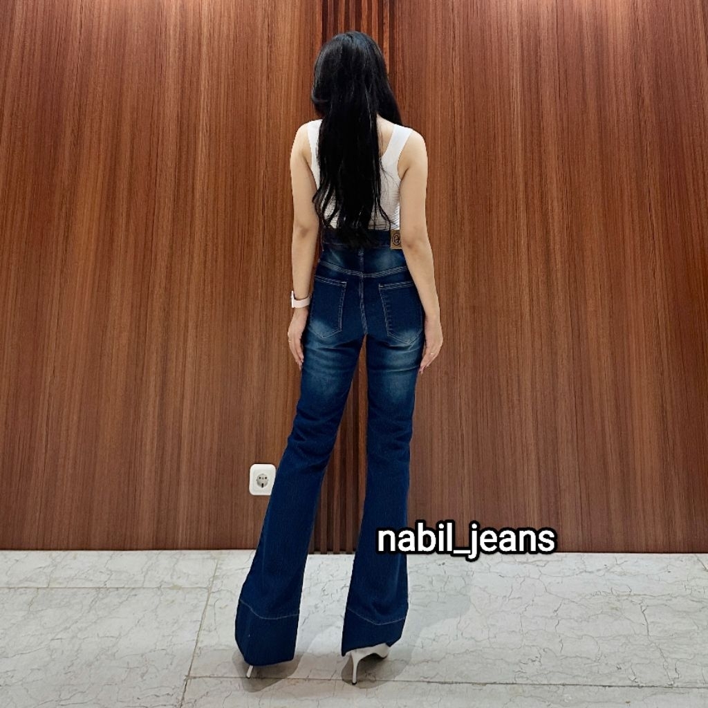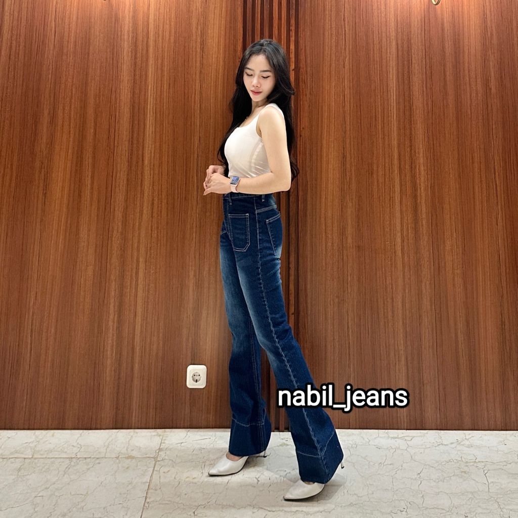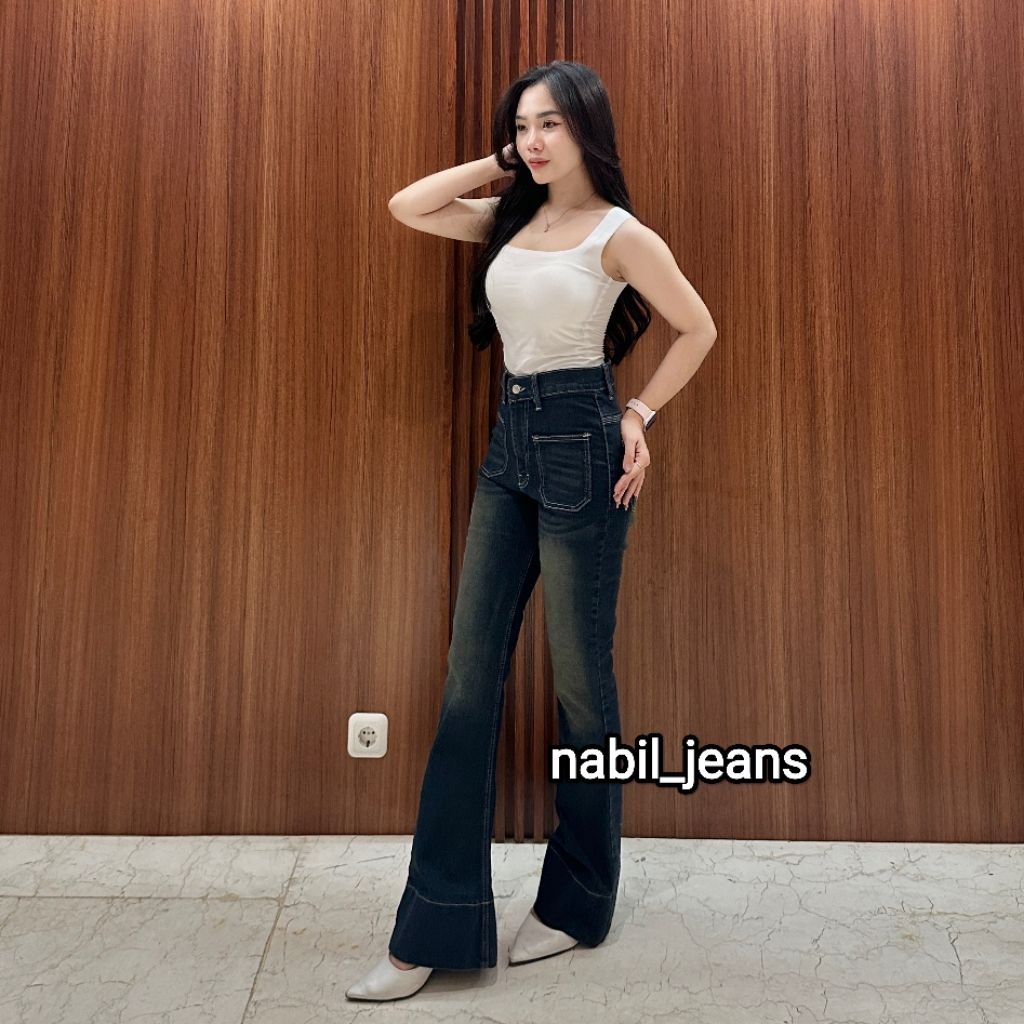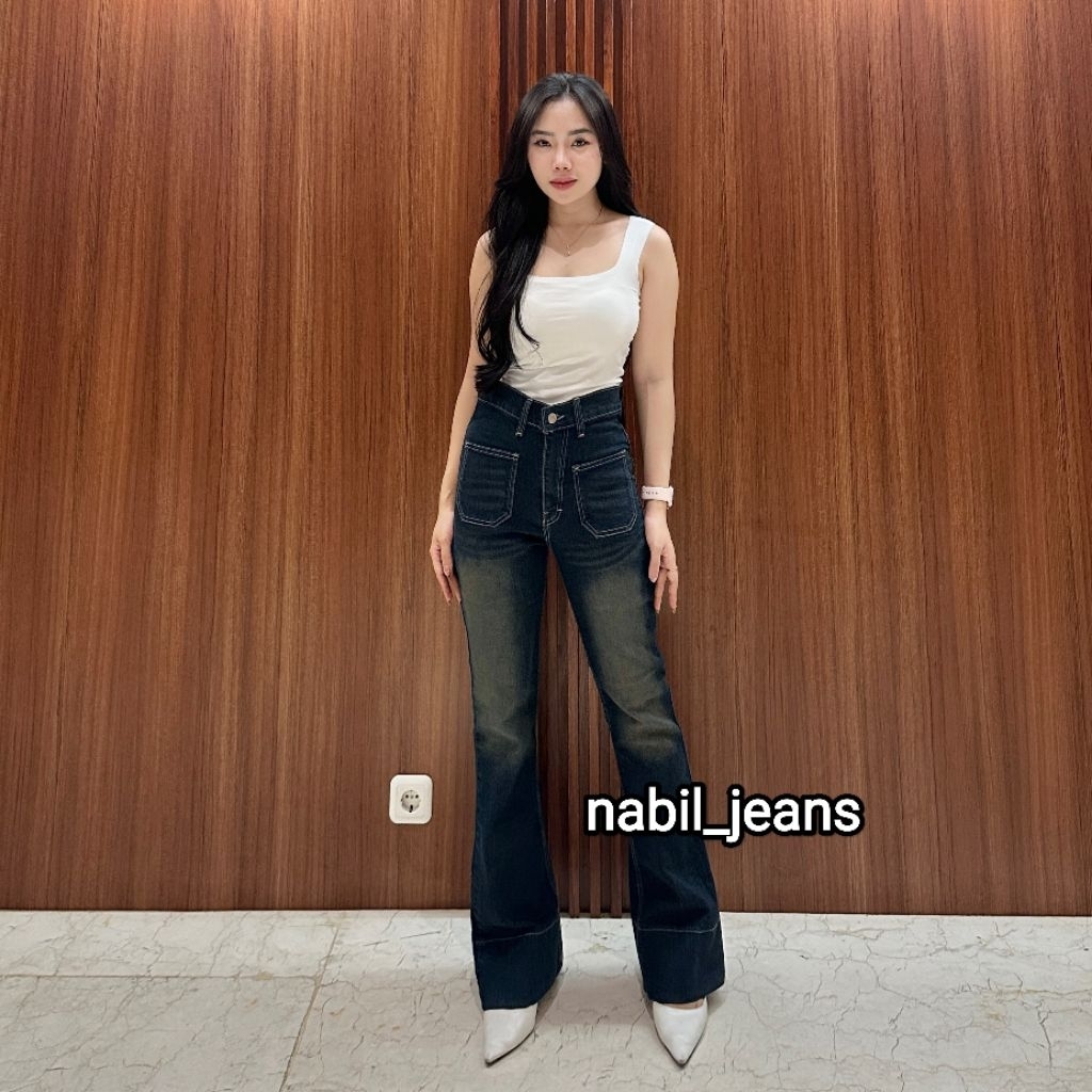 NABIL JEANS l Celana Jeans Cutbray Wanita Highwaist Lipatan Kaki Besar