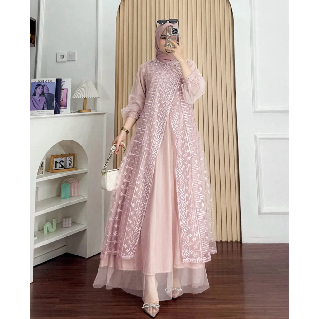 TERBARU KAYLA DRESS Pesta Tille Mix Brukat Full Puring Aplikasi Payet Mutiara Mewah Gamis Kondangan