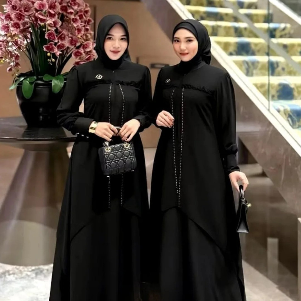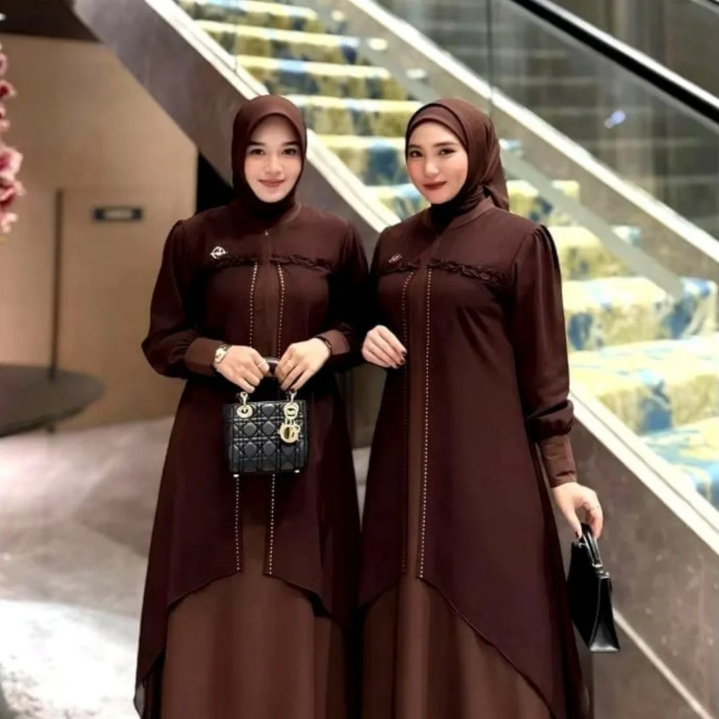 Nadinee Dress Mahogany Gamis Pesta Layer Depan Ceruty Babydoll Mix Swaroski Gamis Lebaran 2026