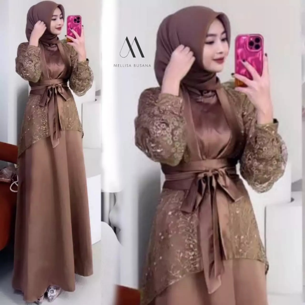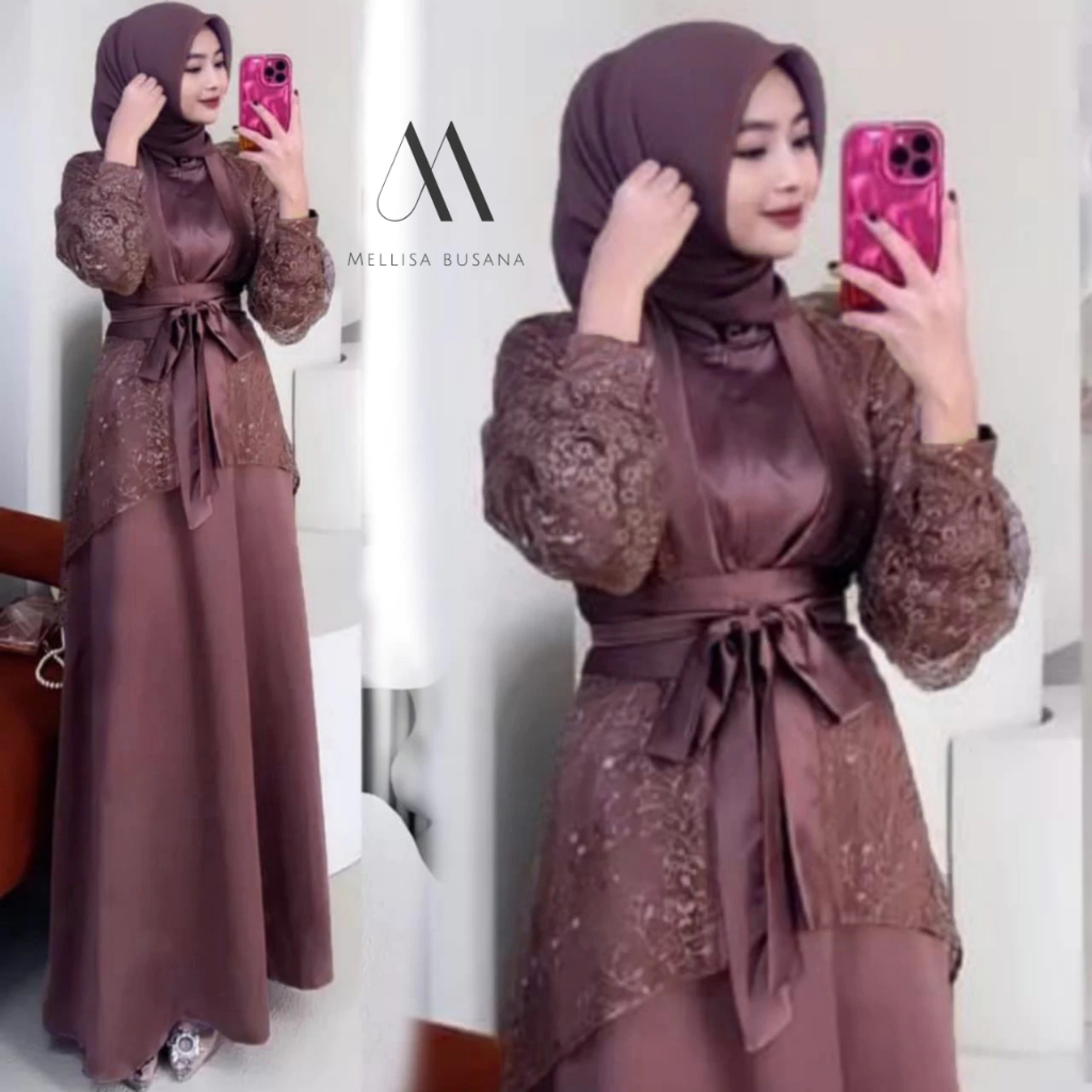 Veloxa Dress Lebaran Busui Kondangan Inner Belt Outer M L XL XXL Premium Jumbo Mewah Gamis Muslim Brukat Satin Burgundy