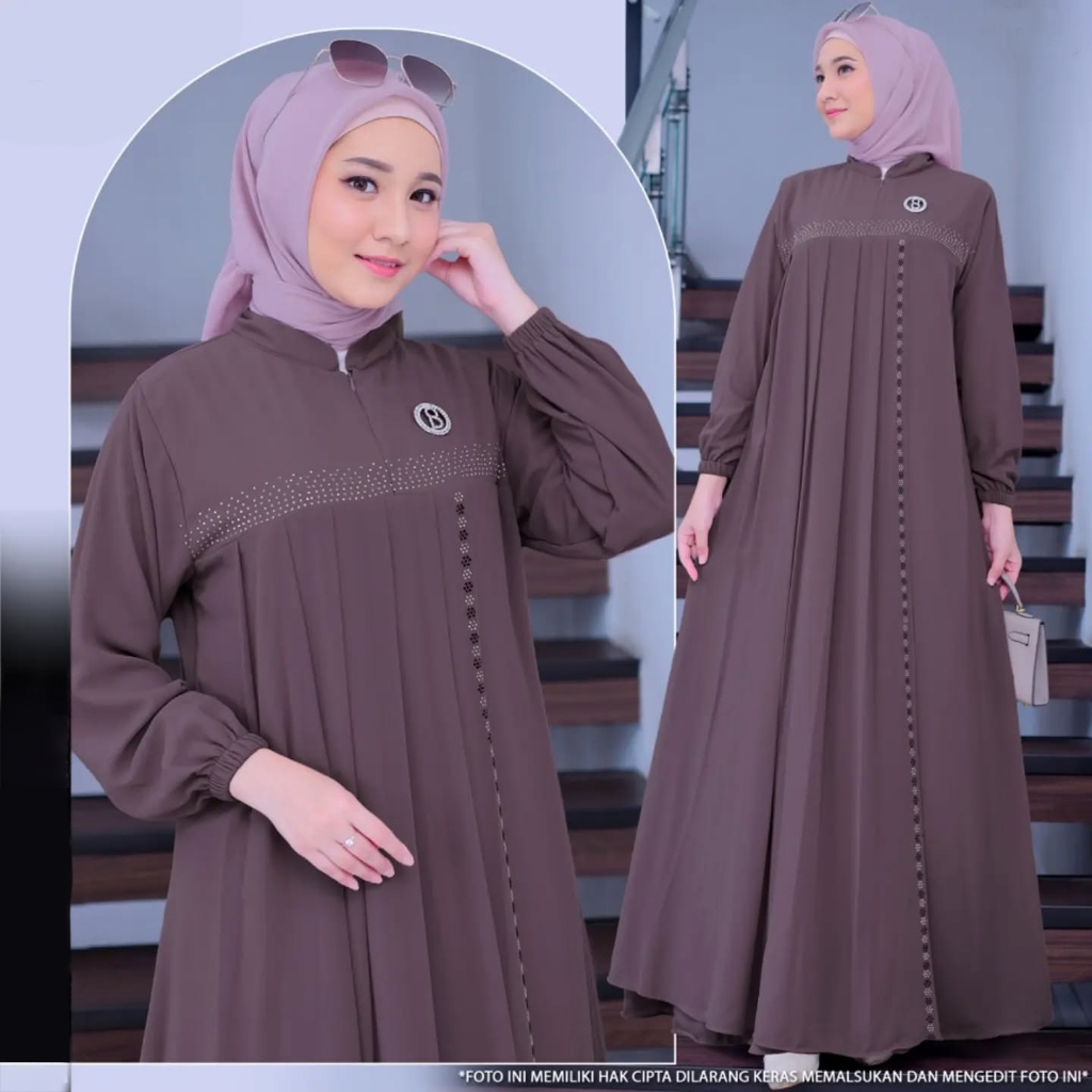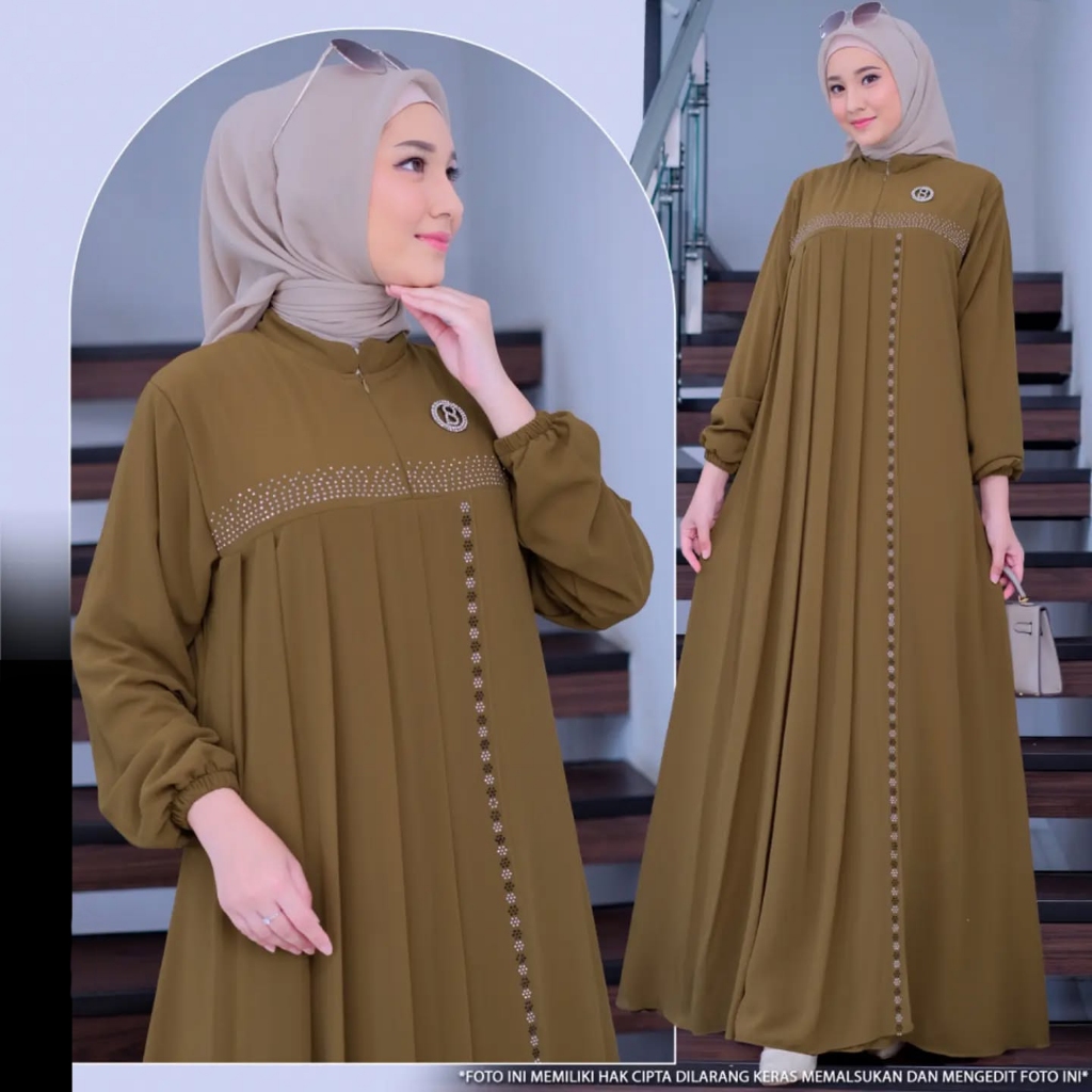 Anggun Dress Ceruty Babydooll Fashion Wanita Muslim Gamis Mewah Premium Terlaris Abaya Terbaru Busui