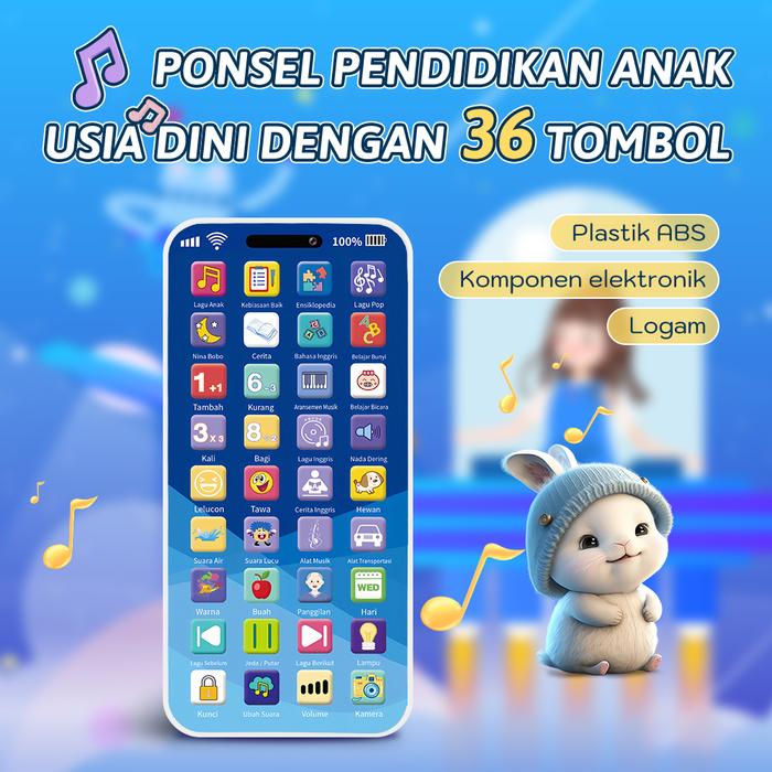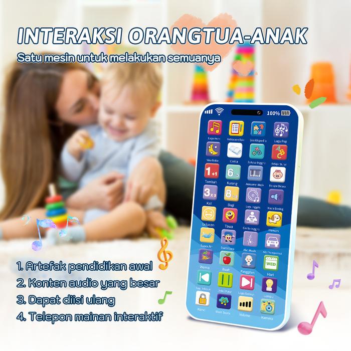 [Star]Smart baby Mainan telepon mainan edukasi paling populer 28 tombol fungsi + lampu + konten audio lengkap Cocok untu