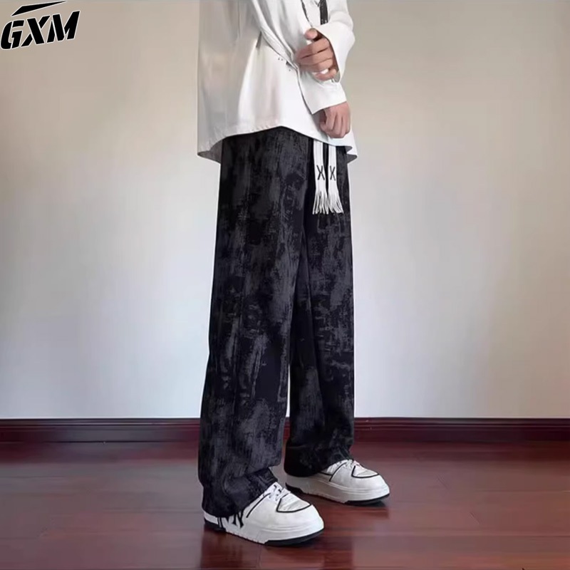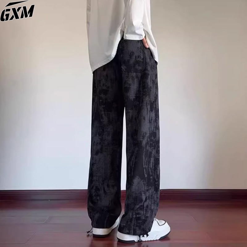 GXM Celana Ppanjang Corduroy Pria Celana Putih Pria Tebal Celana Harajuku Pria Y2K Hitam Baggy Corduroy Pants