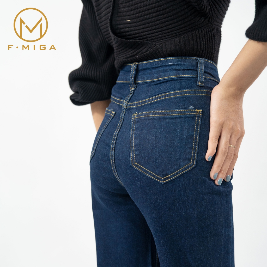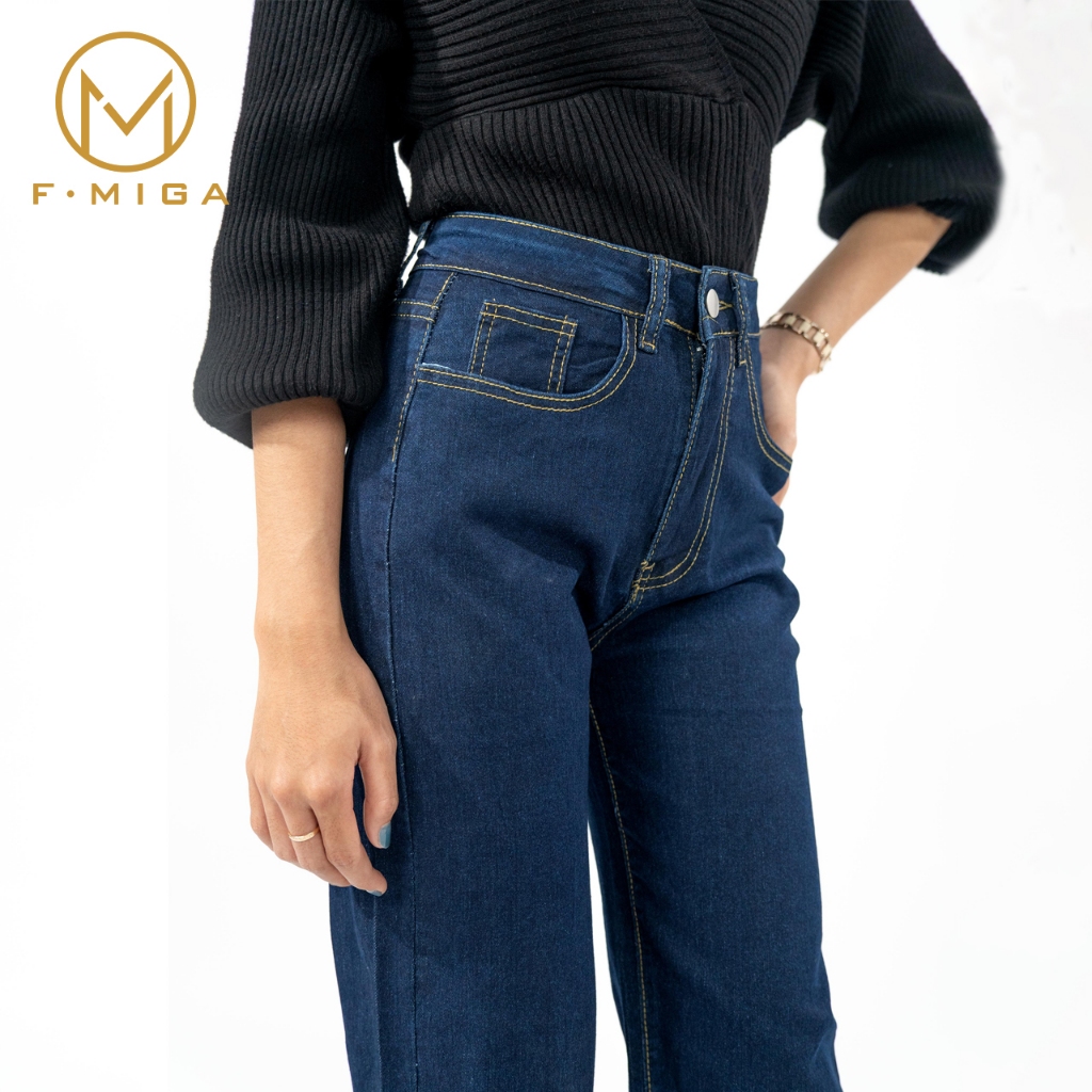 F·MIGA C181 Korean Style Highwaist Stretch Kasual Pants Celana Jeans Wanita - Biru Laut