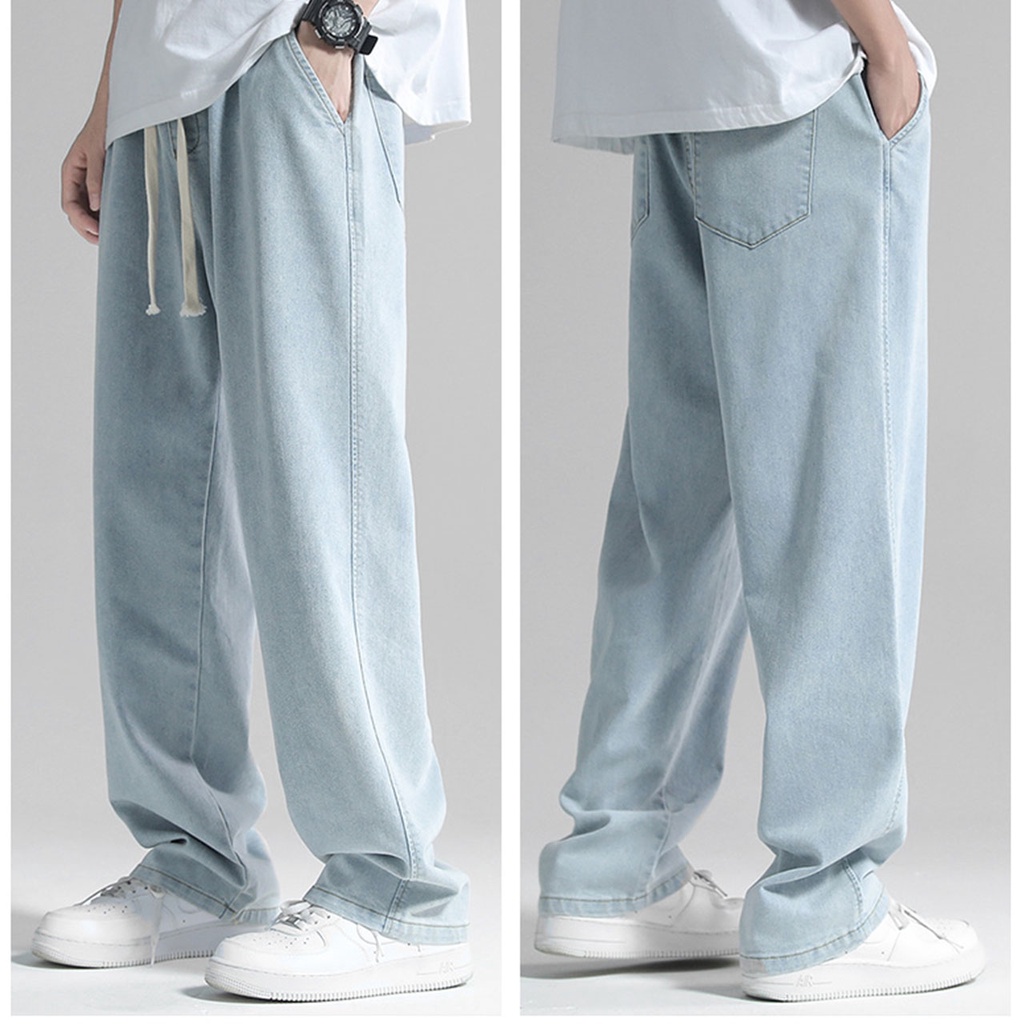 Celana jeans pria celana pria kulot jeans loose pants pinggang karet jeans celana pria korean style straight jeans boyfr
