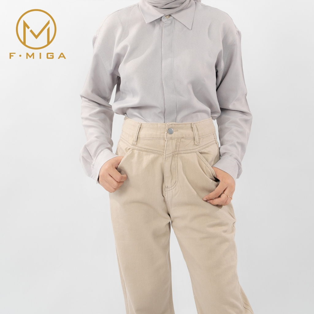 F·MIGA C73 Korean Style Kasual Straight Bagy High Waist Jeans Loose Celana Panjang Wanita - Khaki