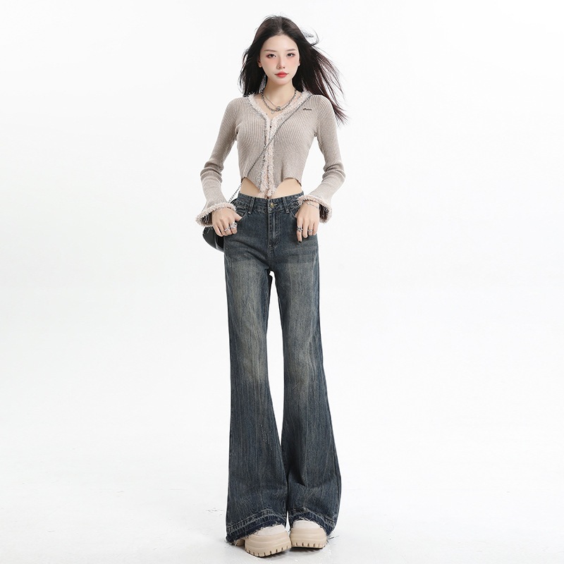 Veegirl Celana Jeans Wanita High Waist Flare Pants Cutbray Denim Korean Style Slim Fit Vintage Panjang